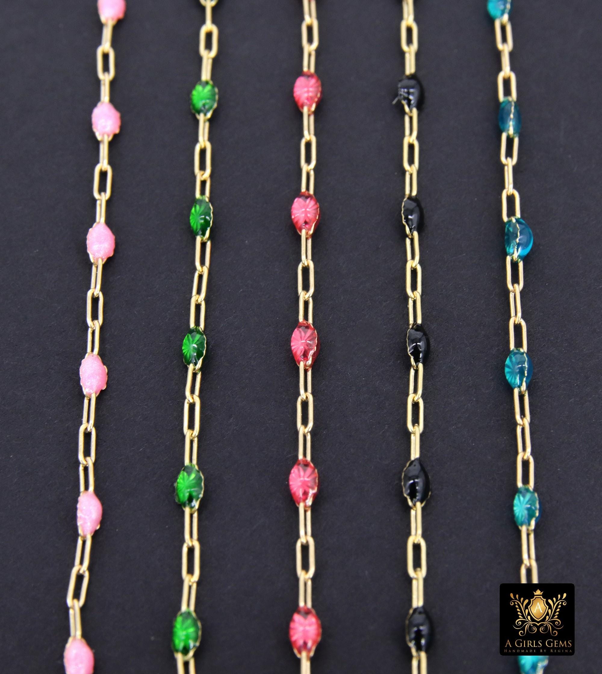 Genuine 14 K Gold Filled Dainty Beaded Paperclip Chain, Handmade Chains in Fuchsia Pink, Black, Blue Turquoise, Green and Soft Pink, Unfinished Chains Soldered Links.