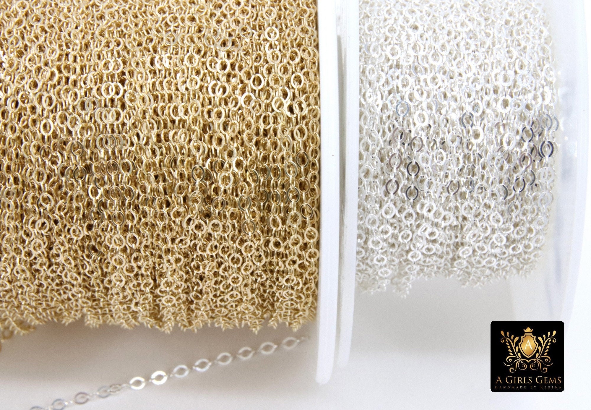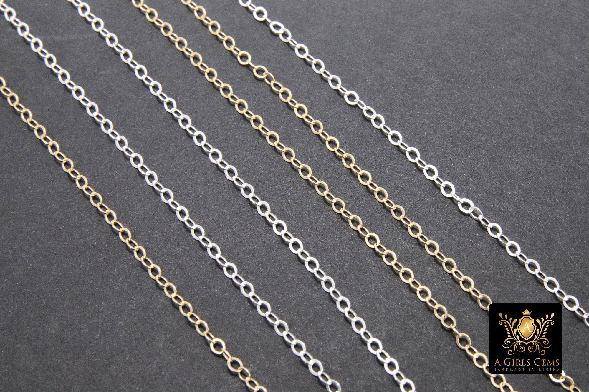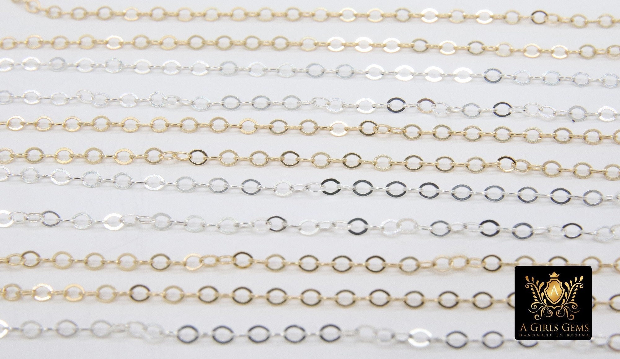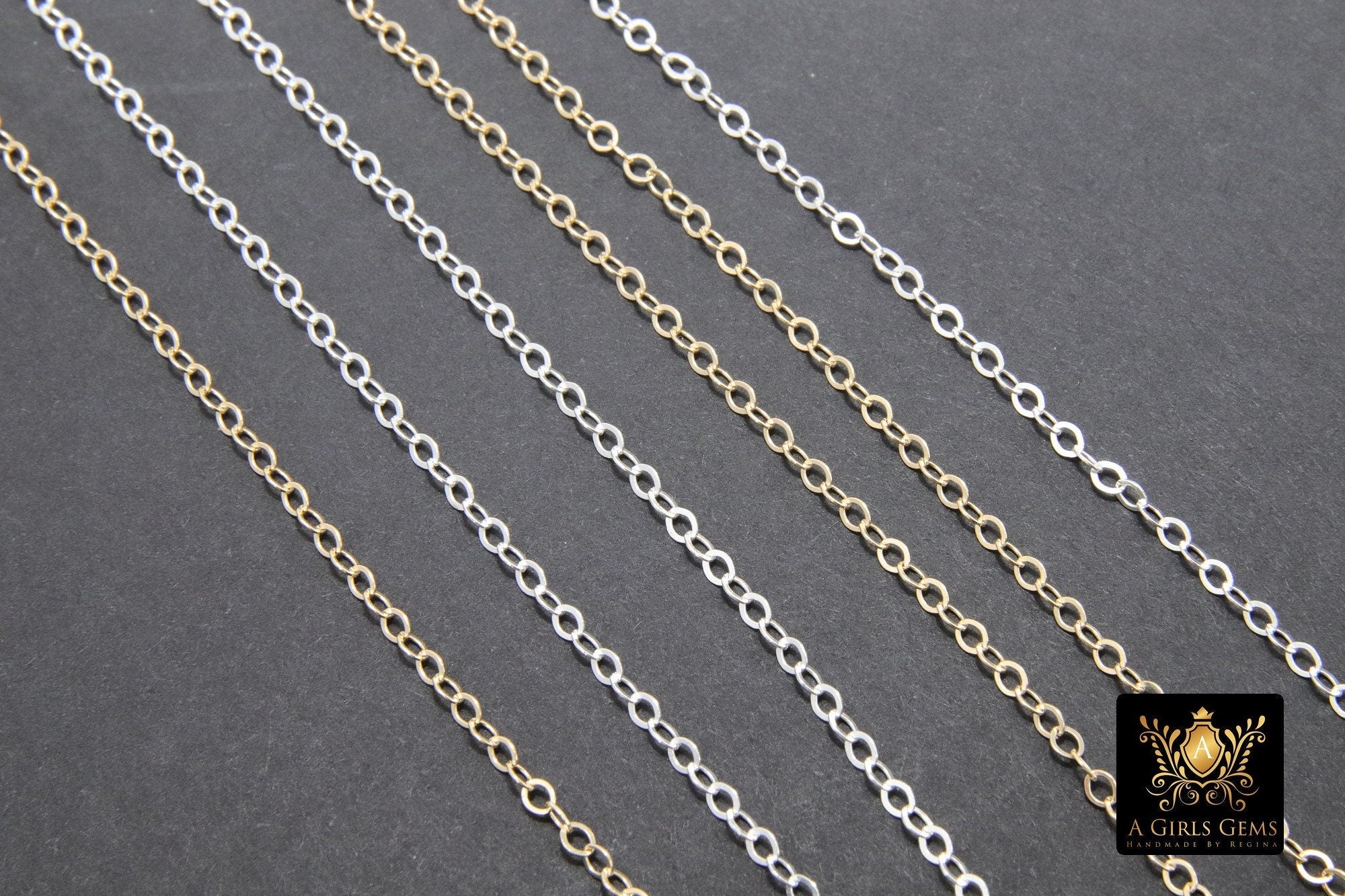 14 K Gold Filled Hammered Cable Chains, 2.4 x 1.9 mm 925 Sterling Sliver CH #838, Dainty Chain