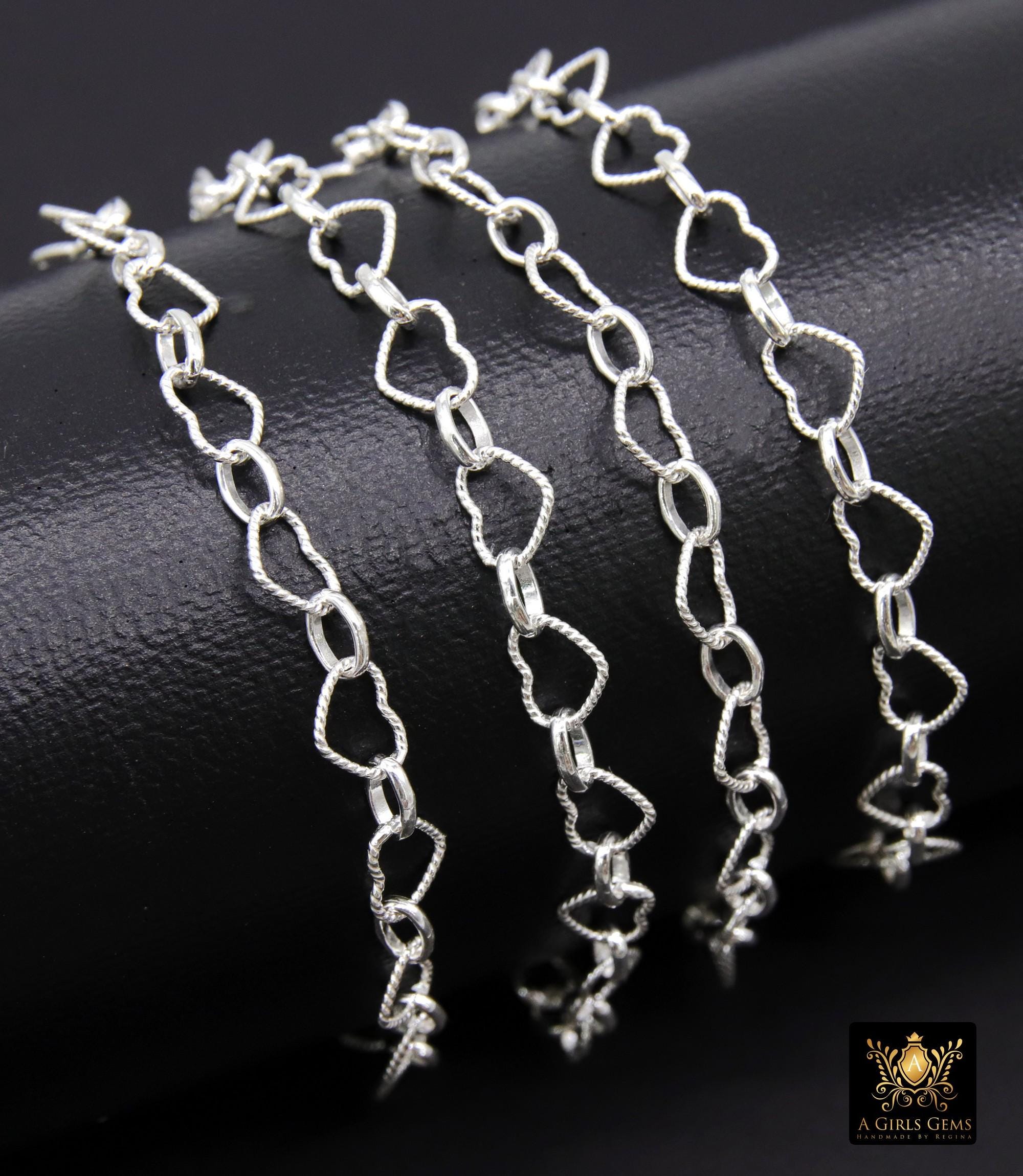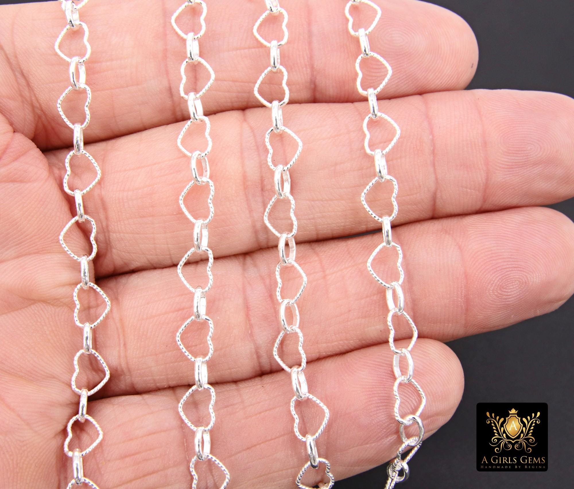 925 Sterling Silver Heart Chain, 6 mm Silver Hammered Heart Shaped Chain CH# 884, Designer Jewelry Chain
