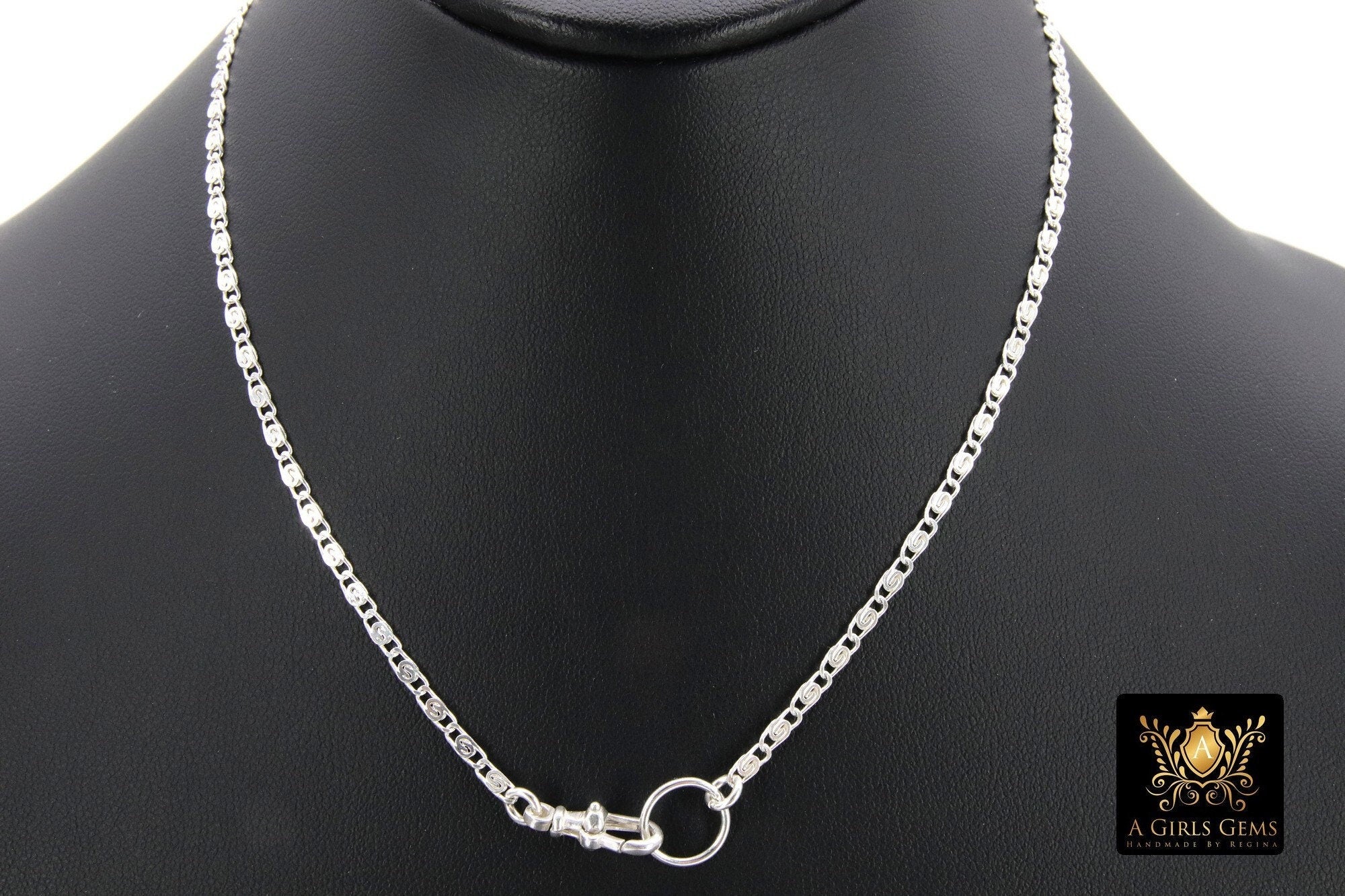 925 Sterling Silver Swivel Fob Chain Bar Link Necklace