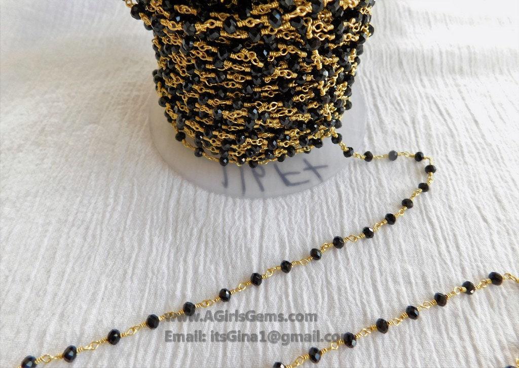 Black Rosary Chain, Wire Wrapped Wire In Gold, Beaded Rosary Chain 4 mm Rondelle for DIY Religious Boho Style Necklace Bracelets