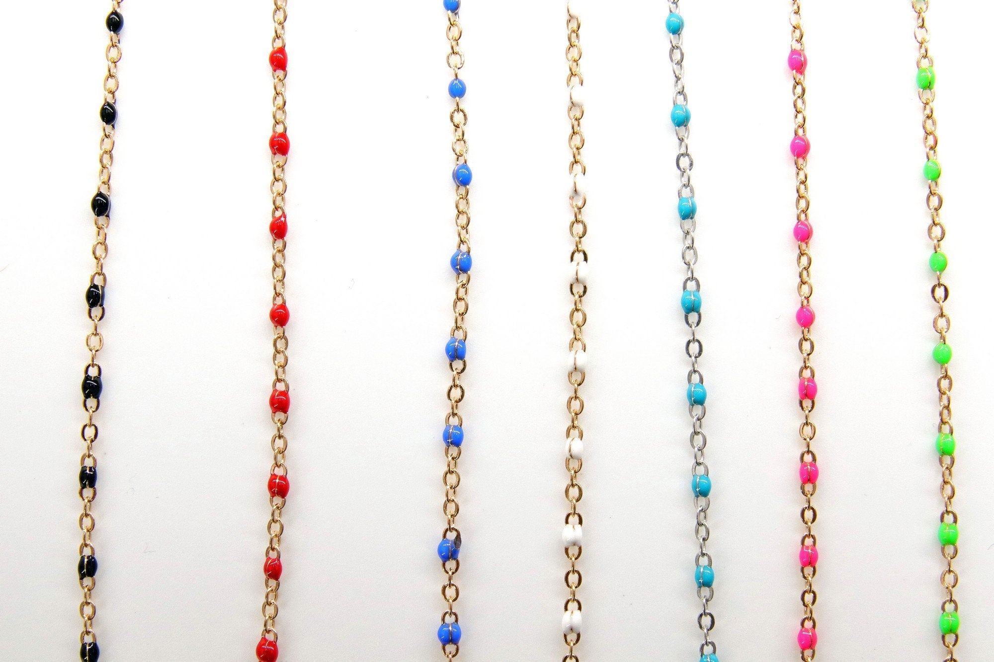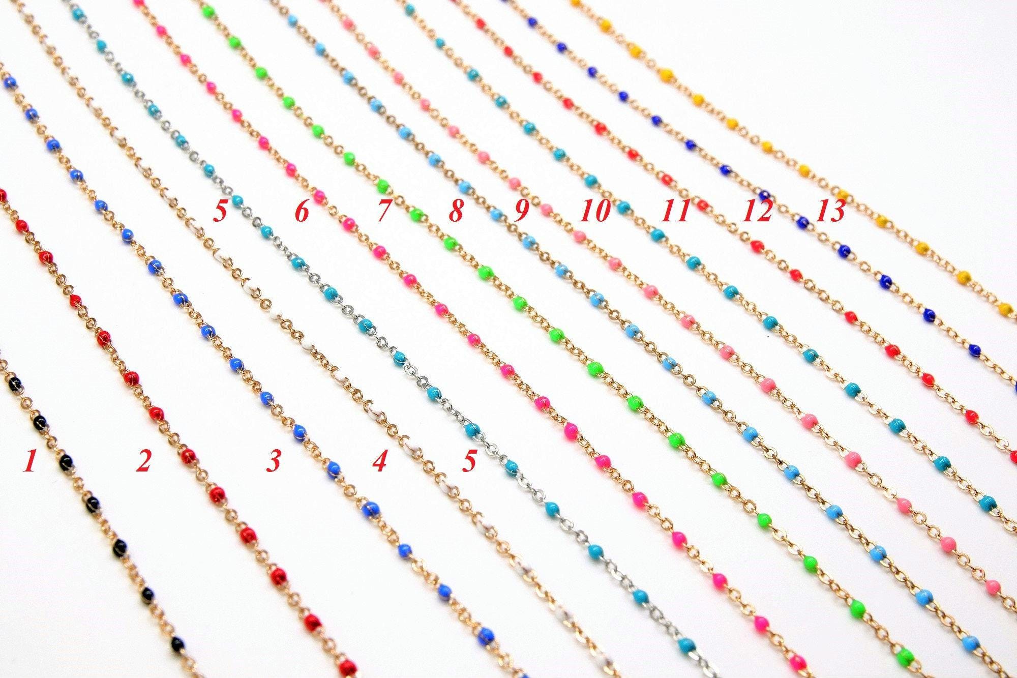 Dainty Beaded Satellite Enamel Chain, Rainbow Jewelry Chain CH #621,By Yard Unfinished, Gold 18 Color