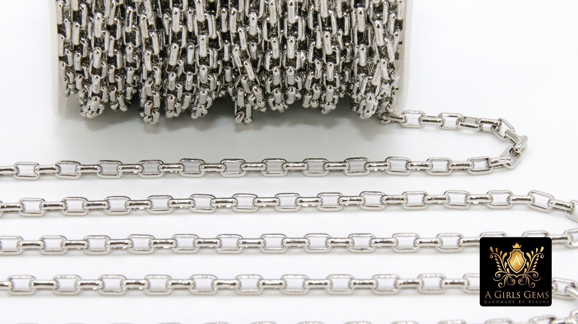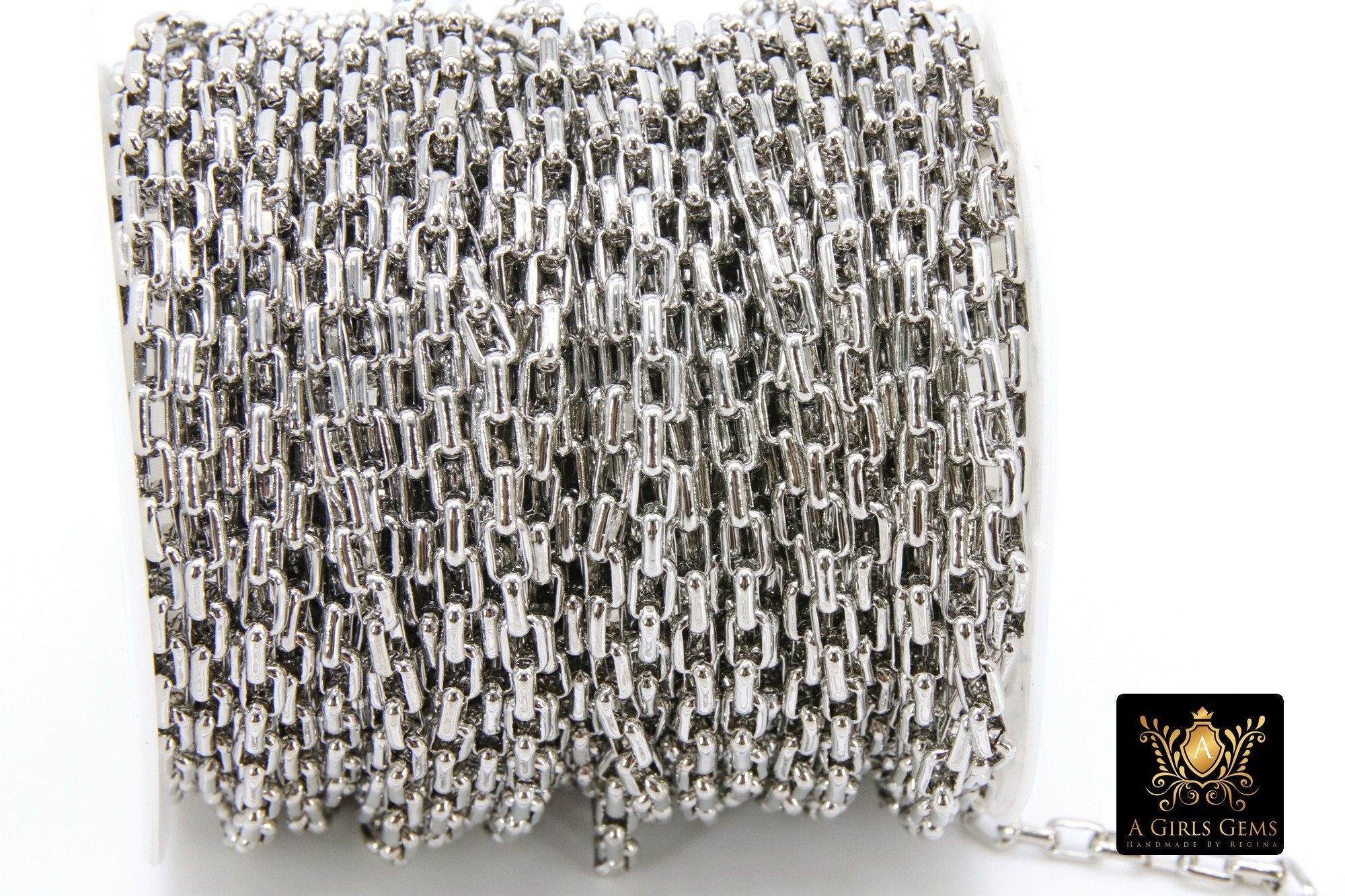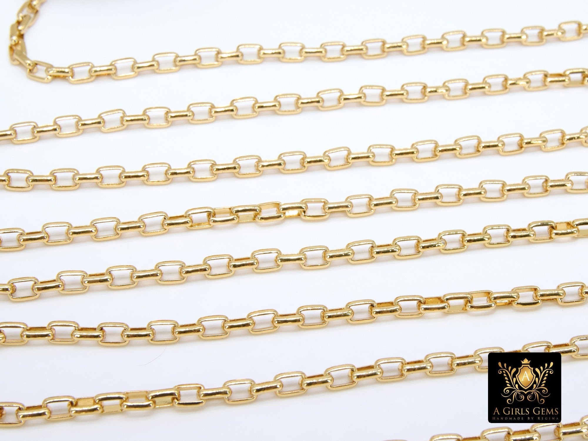 Gold Plated Box Chain: Thick Rectangle Jewelry Chains (5.0 x 3.5 mm) CH 164, Silver Box Chain