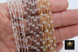 Gunmetal Black Rosary Chain, Crystal Wire Wrapped Chains CH #346, 6 mm Faceted Glass Crystal Beads