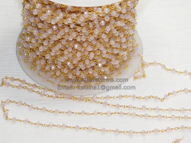 Light Pink Rosary Chains, 22 k Gold Mystic Pink Chalcedony 4 mm Rondelle for Bezel Connector DIY Religious Boho Style Bracelet Necklaces