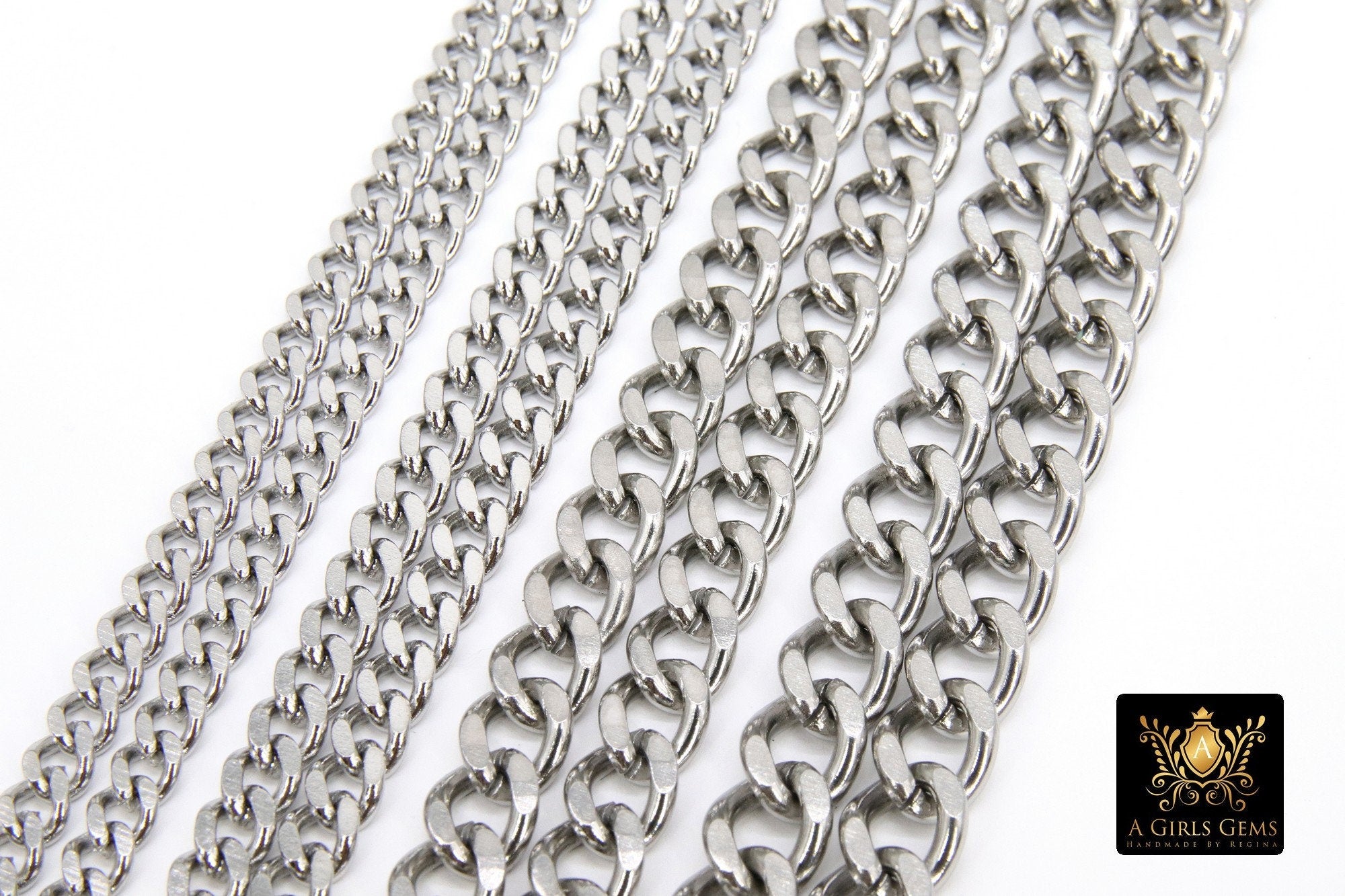 Silver Curb Chain, Plated Stainless Steel Large Cuban Diamond Cut Oval Unfinished Necklace Jewelry Chains