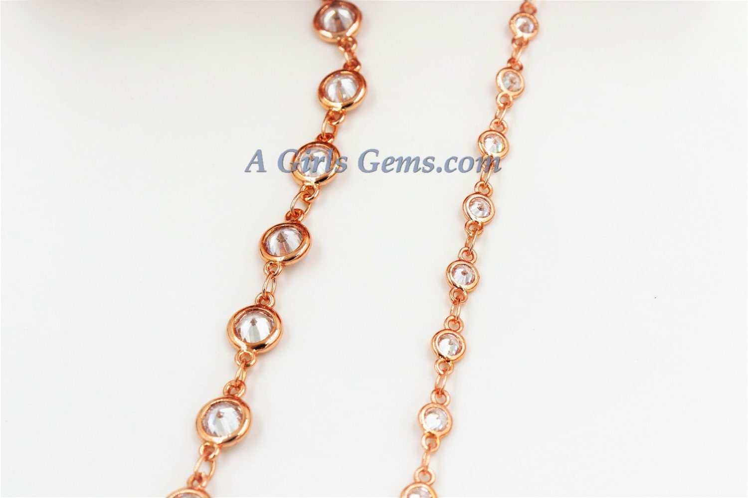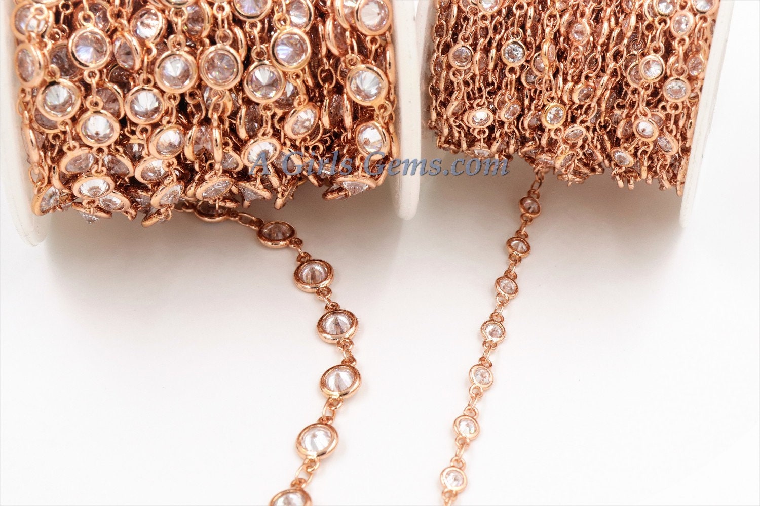 Rose Gold CZ Chain By The Foot, 4 or 6 mm CZ Rosary Chain, Geniune Cubic Zirconia Connector Linking Chains, DIY Bracelets or Necklaces.