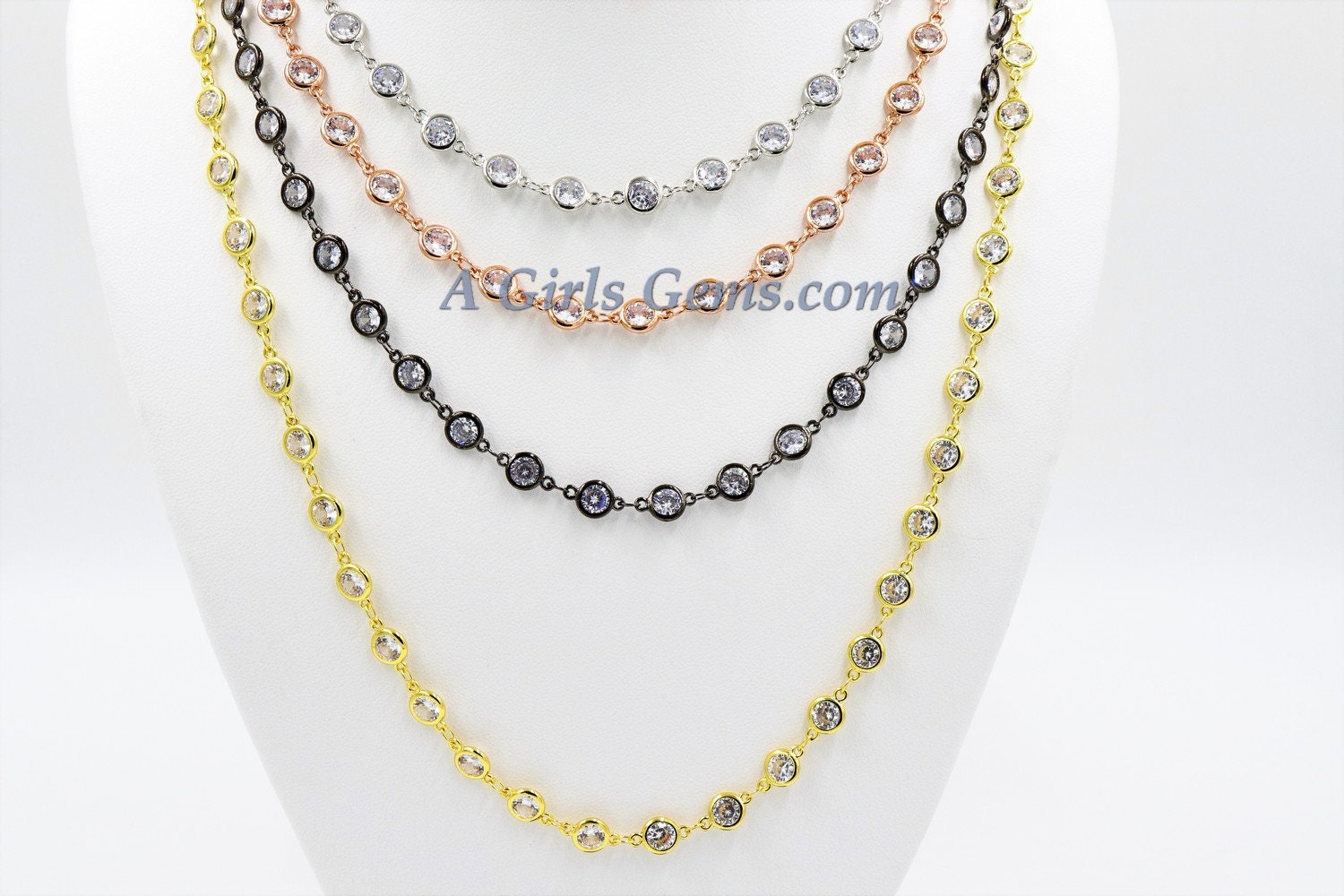 Silver CZ Chain By The Yard, 4 or 6 mm Genuine CZ Chain CH# 543, Rose Gold Cz Chains