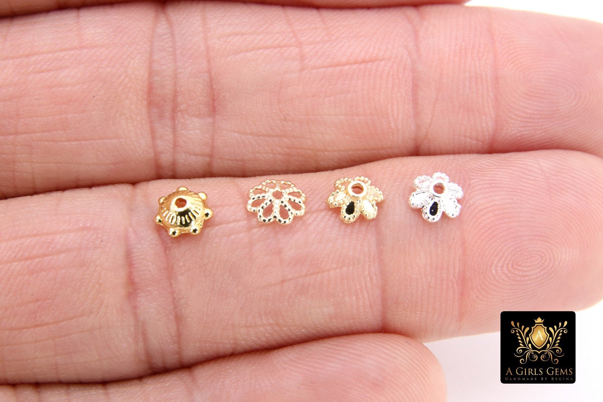 Choice of Four Different Styles of Bead Caps in Gold and Silver 6 mm Styles, High Quality Smooth Plating