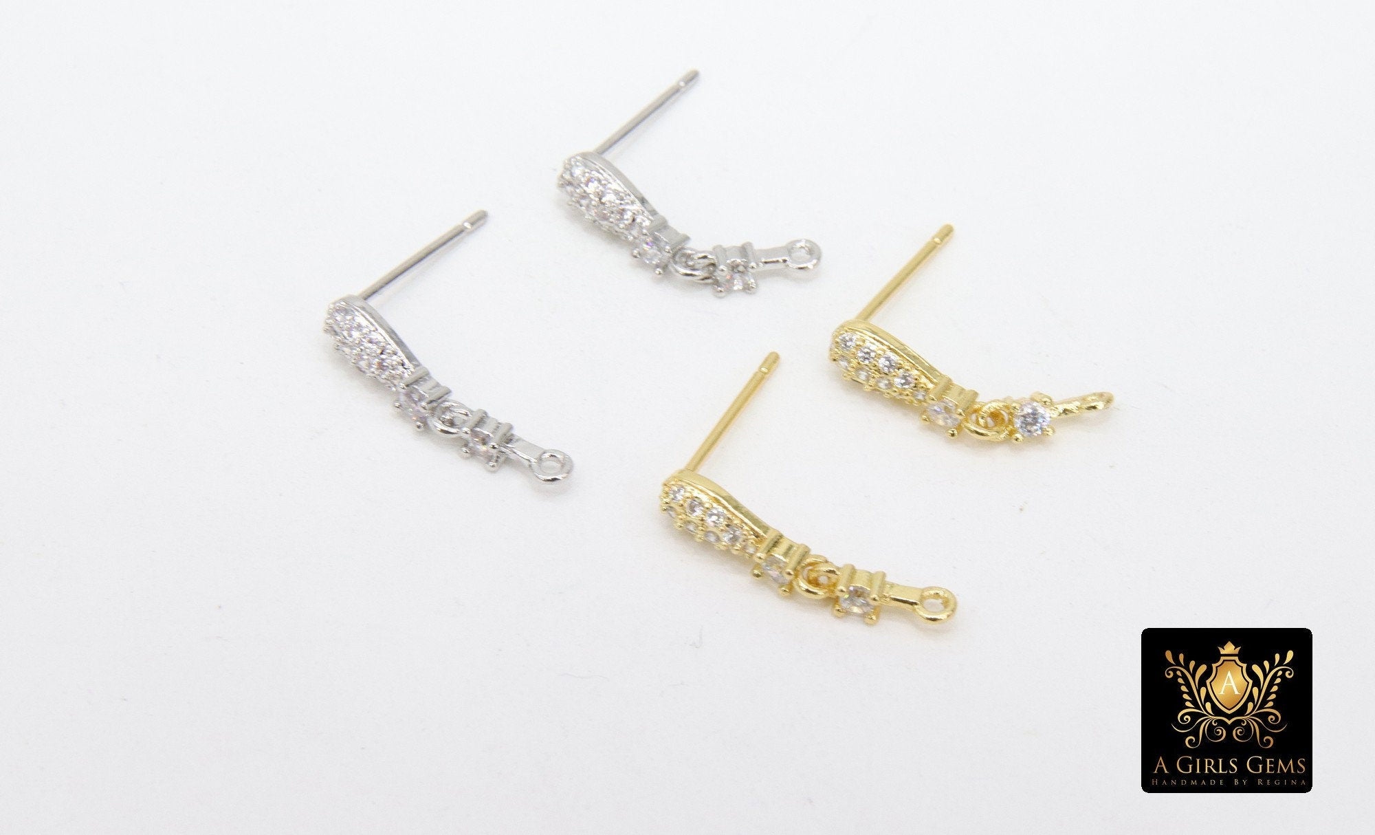 Gold CZ Pave Earring Findings, Silver Pear Teardrop Stud Posts High Quality plated Copper Earring Findings, Soldered Loop Component Parts