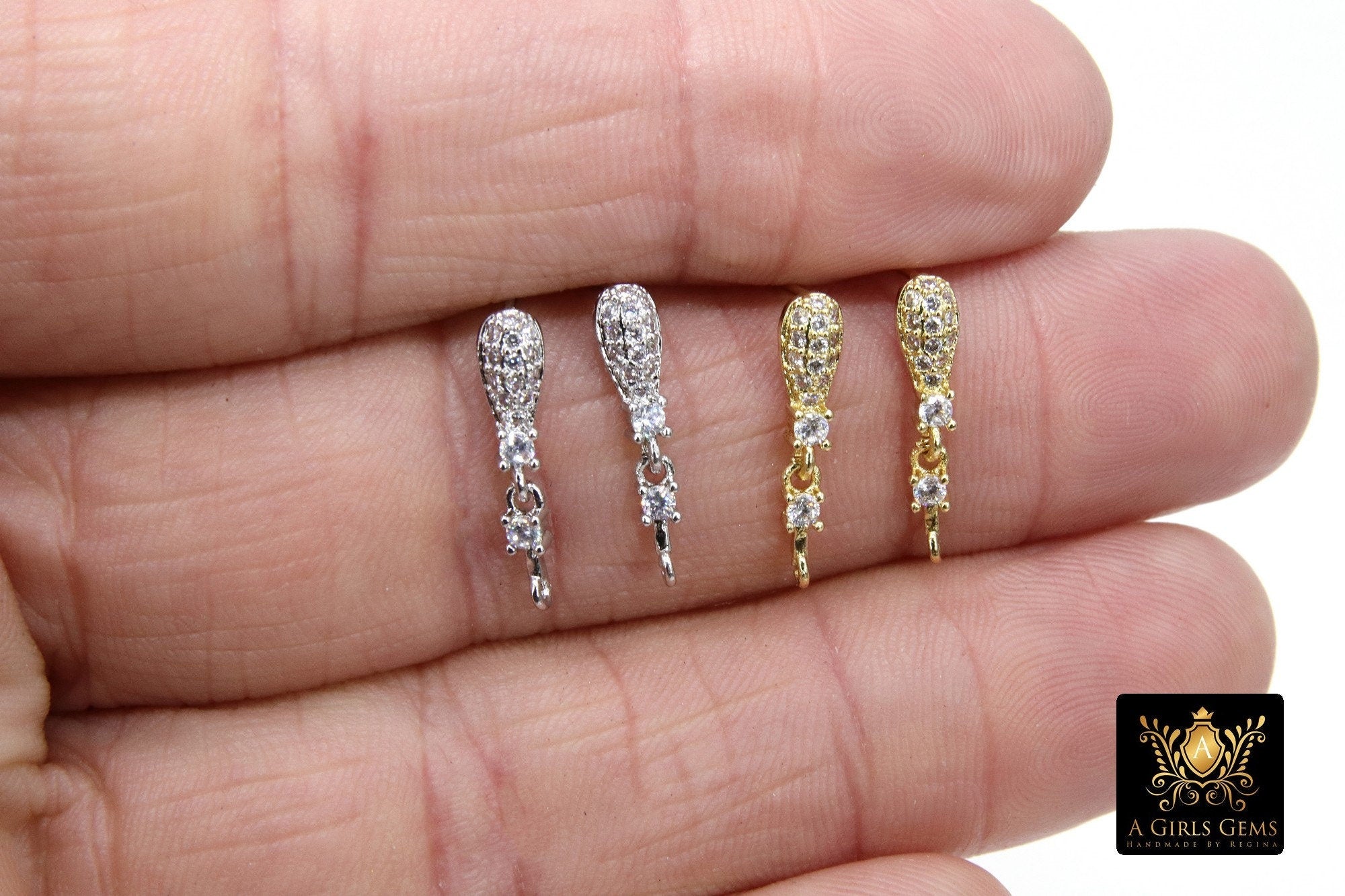 Gold CZ Pave Earring Findings, Silver Pear Teardrop Stud Posts #822, Closed Loop Component Parts