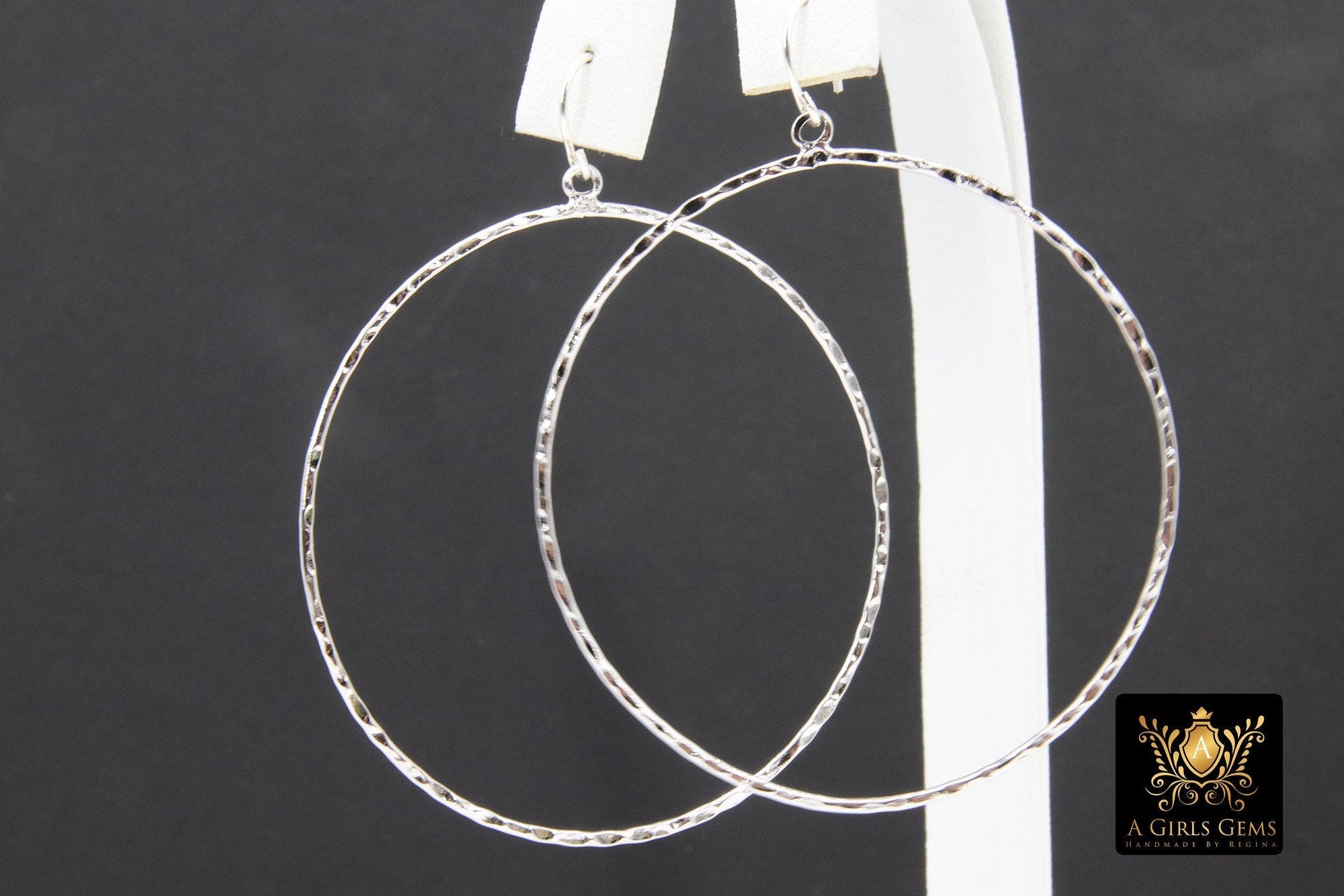 Textured Silver Round Hoop Ear Rings, 50 mm Glittery Gold Charms #807, High Quality Light Weight Wire Hoops Finding