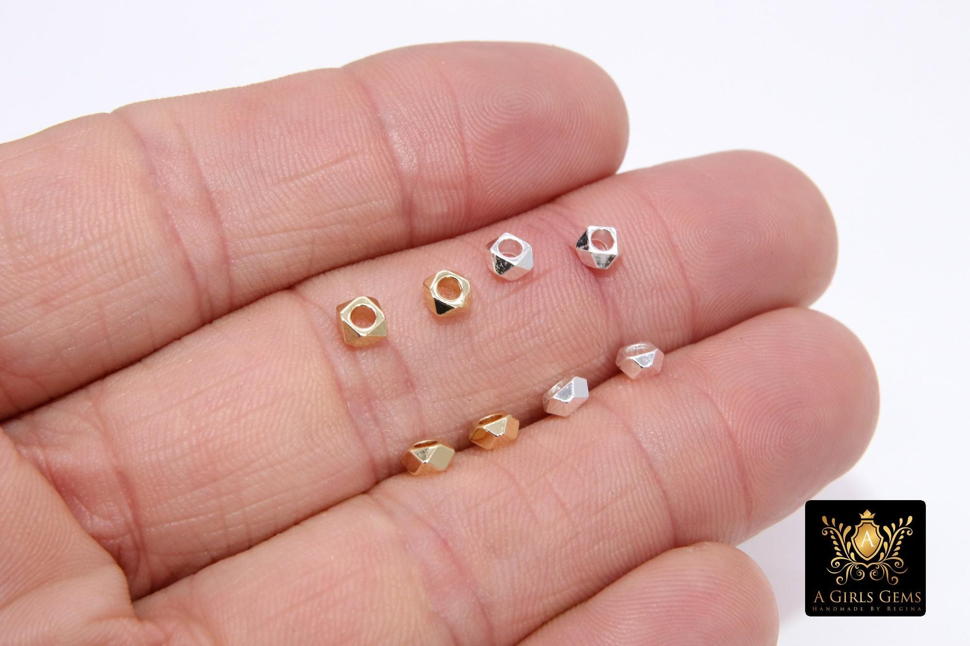20 Pieces Faceted Polygon Gold Spacer Beads, 4 mm Bright Silver Round Discs, Half Hexagon Spacer Donuts Beads, High Quality Smooth Plating. Bright Silver looks like a 925 Sterling Silver.