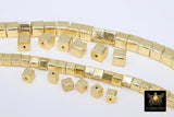 Brushed Gold Square Beads, 6 or 8 mm Focal Bead #726, Gold Cube Drum Beads