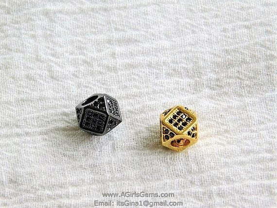 Micro Pave Bead Hexagon Cube Black CZ Pave Focal Square Gunmetal Black/Gold-Plated Bead Spacer. AGGSM303
