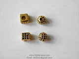 CZ Micro Pave Square or Round Gold and Black Pave Beads, 18 k Gold Plated 6 mm Focal Bead Spacers