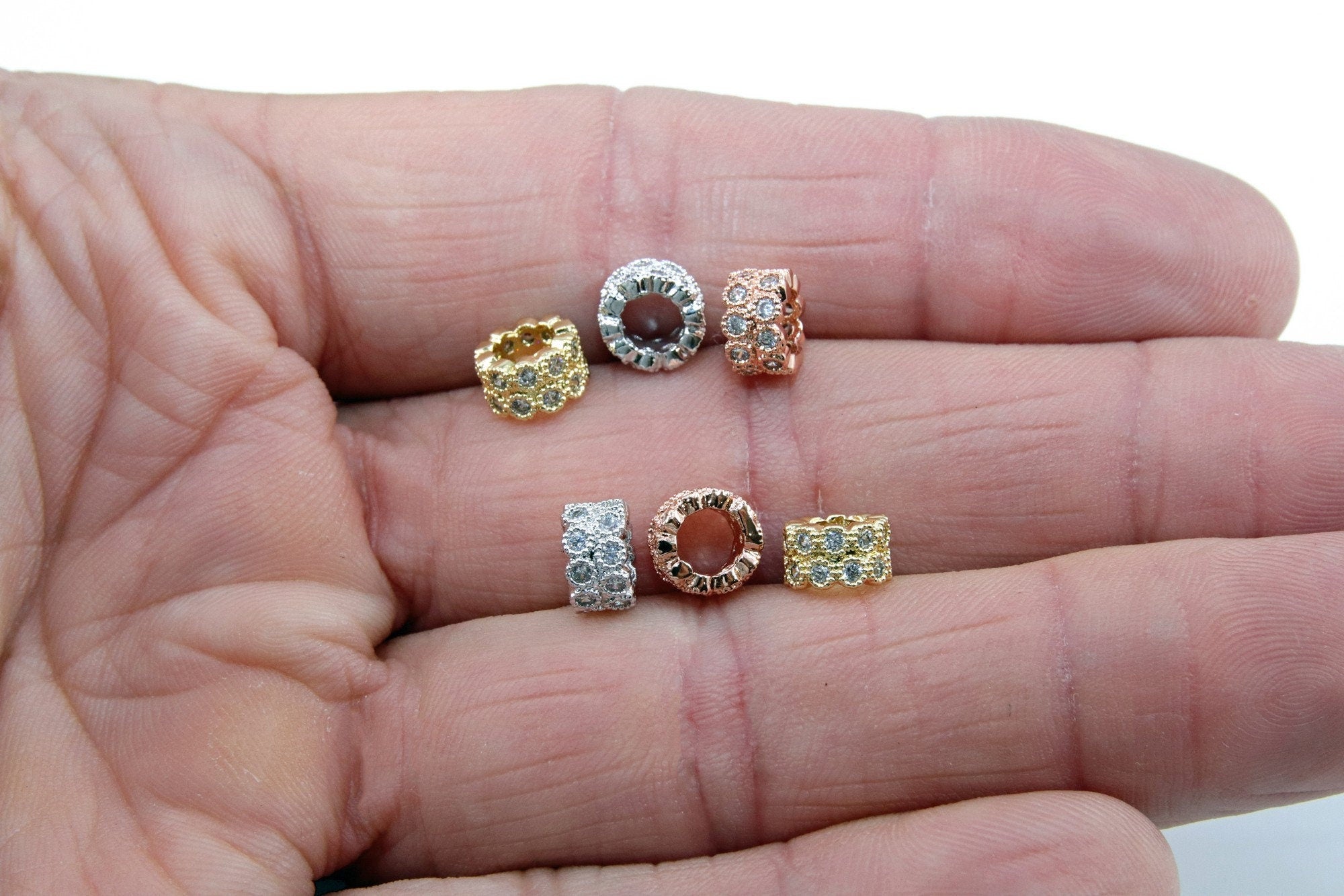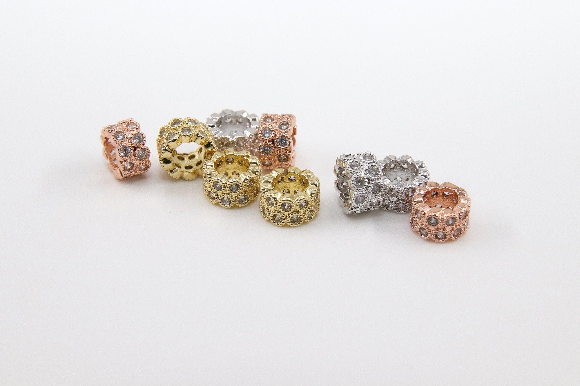 Beads for bracelets, necklaces, earrings or other jewelry accessories. High Quality Jewelry Findings with Diamond Micro Paved Cubic Zirconia.
