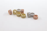 CZ Micro Pave Beads, 2 Pcs Tube Beads 5 mm x 8 mm Cubic Zirconia Hexagon Honeycomb Focal beads, Silver, Gold, Rose Big Hole Beads