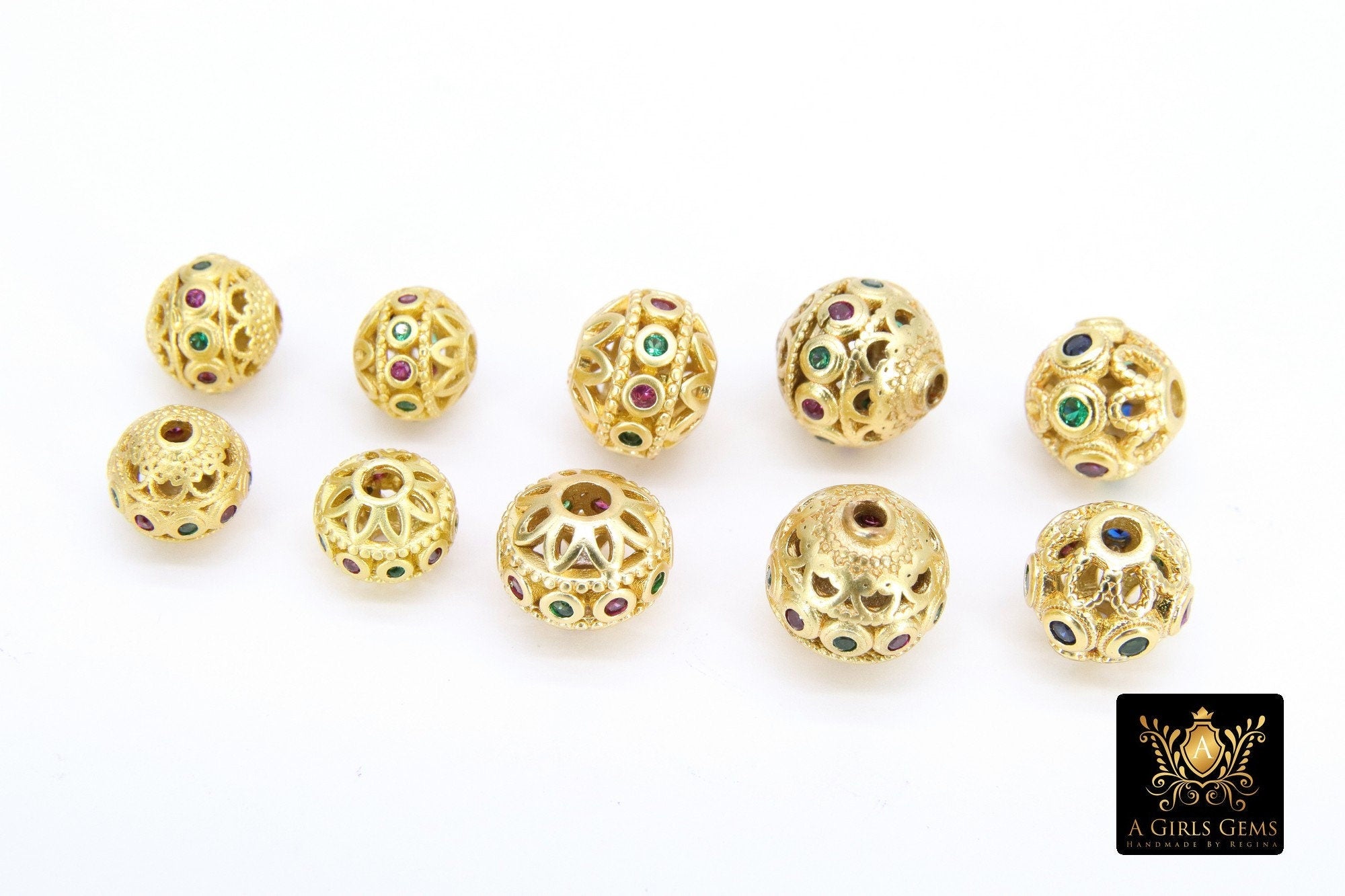 CZ Pave Gold Filigree Beads, Smooth Seamless High Quality 8 mm or 10 mm Round Plated Brass Metal Beads Findings