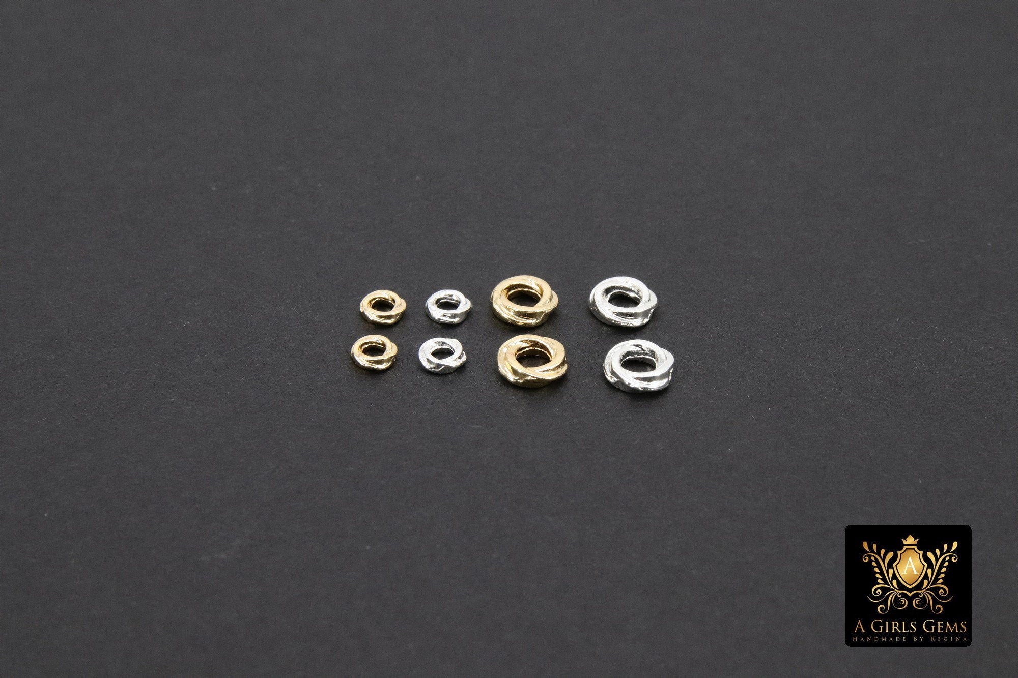 Gold Twist Spacer Beads, 4 mm Or 6 mm Round Silver Knot Rings #3490, Fancy Bumpy Bright Silver Metal Ring Twist