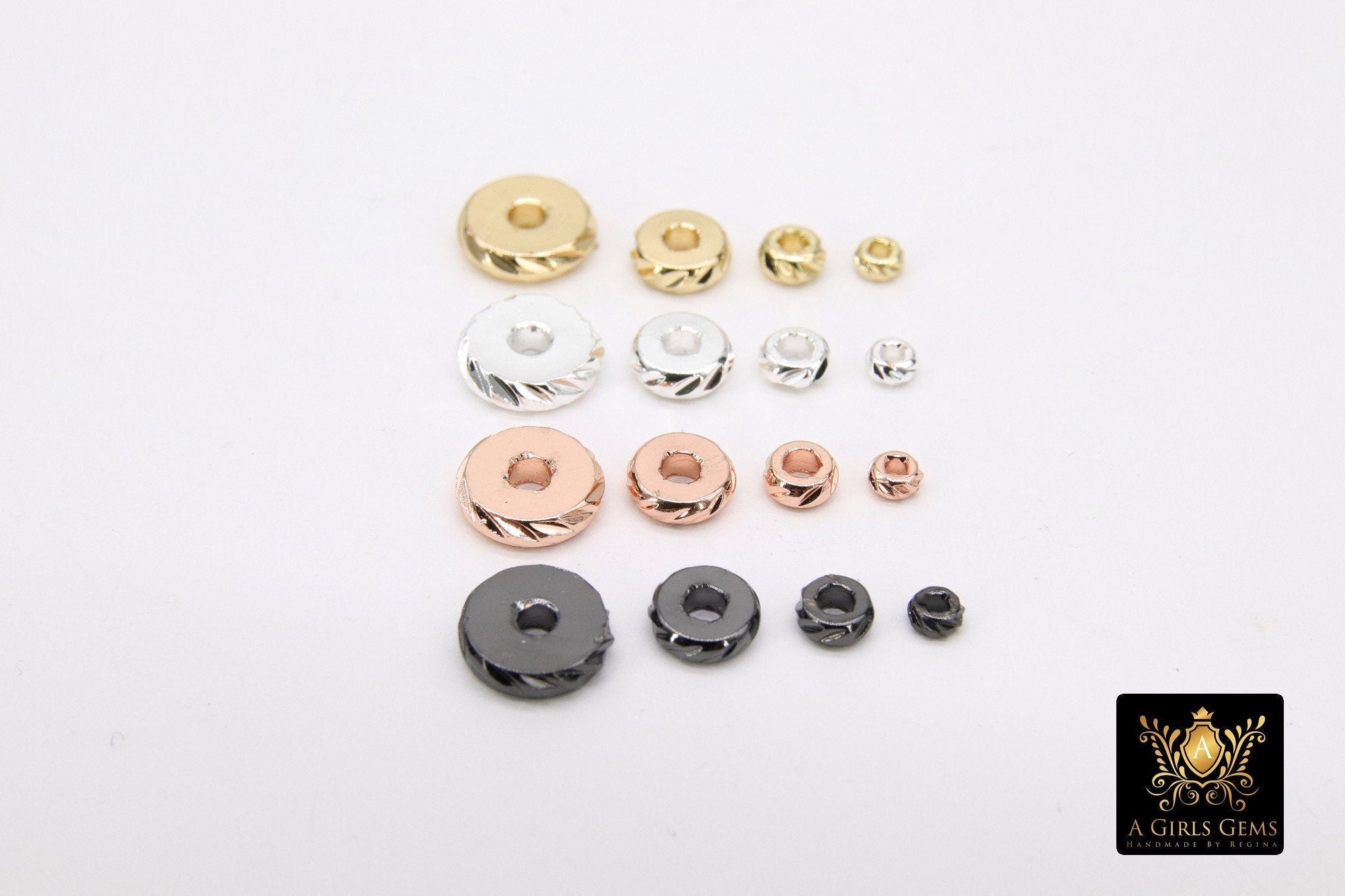 Copper Plated Rondelles made with the same Standards and High Quality of our CZ Items. Flat Spacer Disc Rondelle Beads, Black, Gold, Silver and Rose Gold
