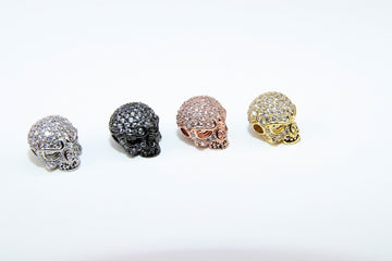 Micro Pave Bead CZ Skull Head Beads **SPECIFICATIONS** Measurements Approximately: 10 mm x 10 mm Holes: 2.0-2.5 mm (side holes); Bottom Hole: 6.0-6.5 mm Colors: Gunmetal Black, Rose, Gold plated Quantity of Items: 1 piece unless otherwise selected Materials: Copper...
