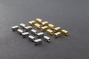 Gold Metal Rectangle Spacer Beads, 6 x 3 mm Silver Plated Box Spacer Beads AG #2365, Long Tube Beads
