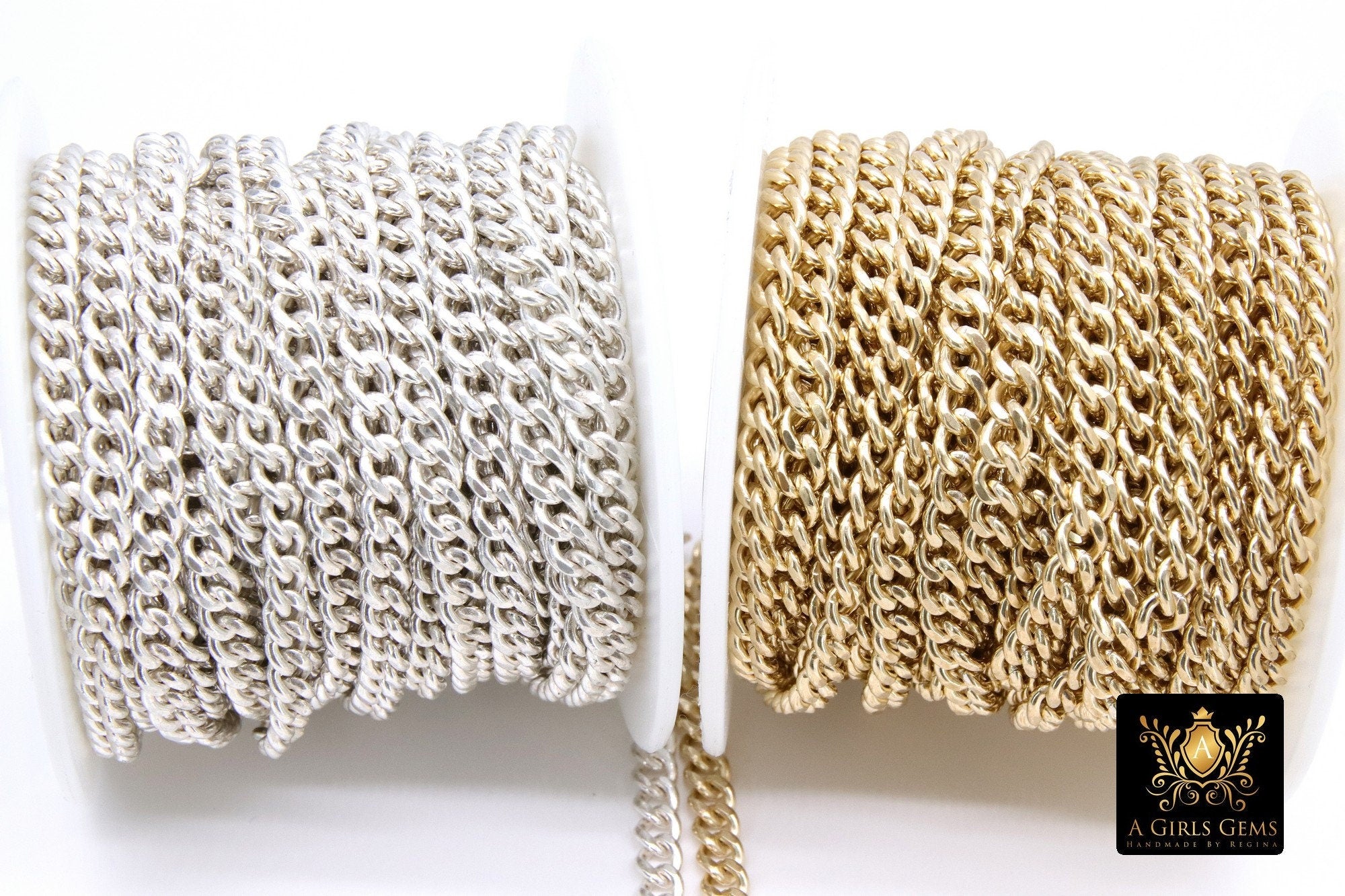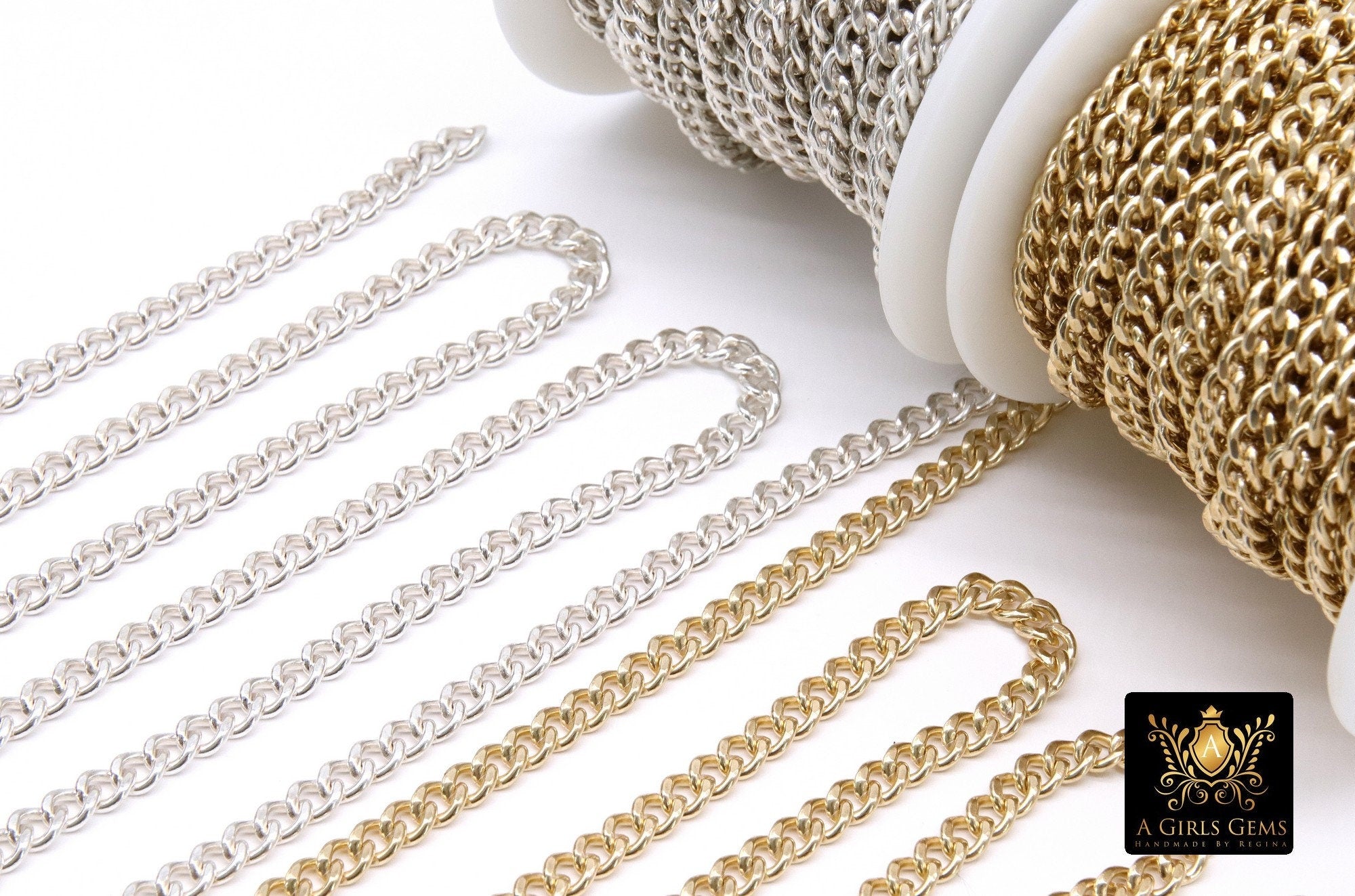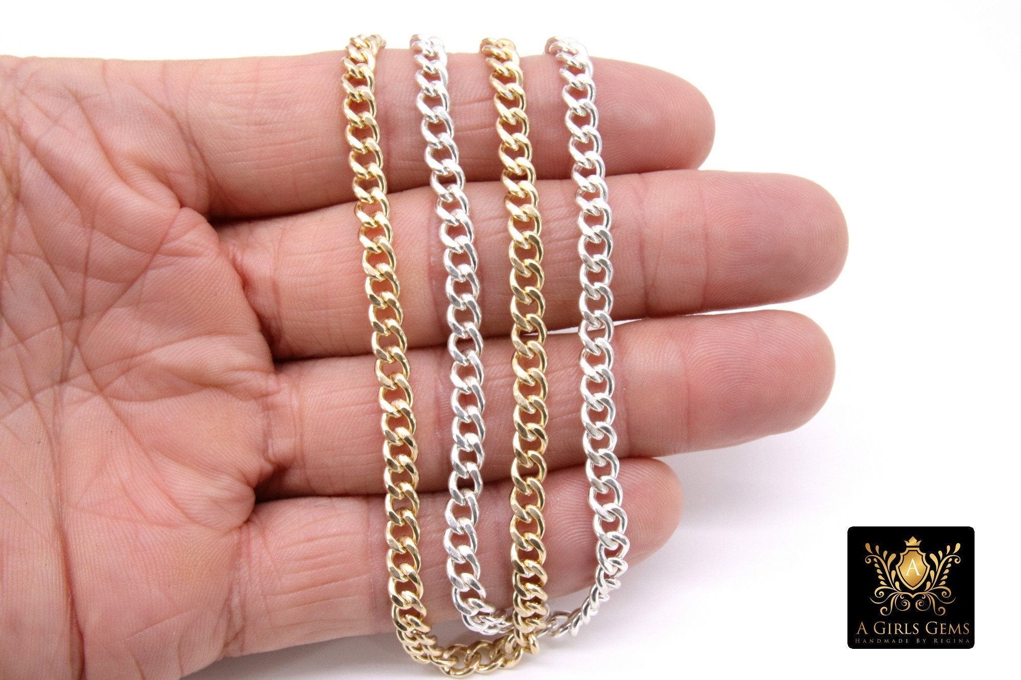 14 K Gold Filled Cuban Curb, 6.5 mm USA 925 Sterling Silver Chain CH# 869, Large Unfinished Diamond Cut 5 mm Curb Chain # 775