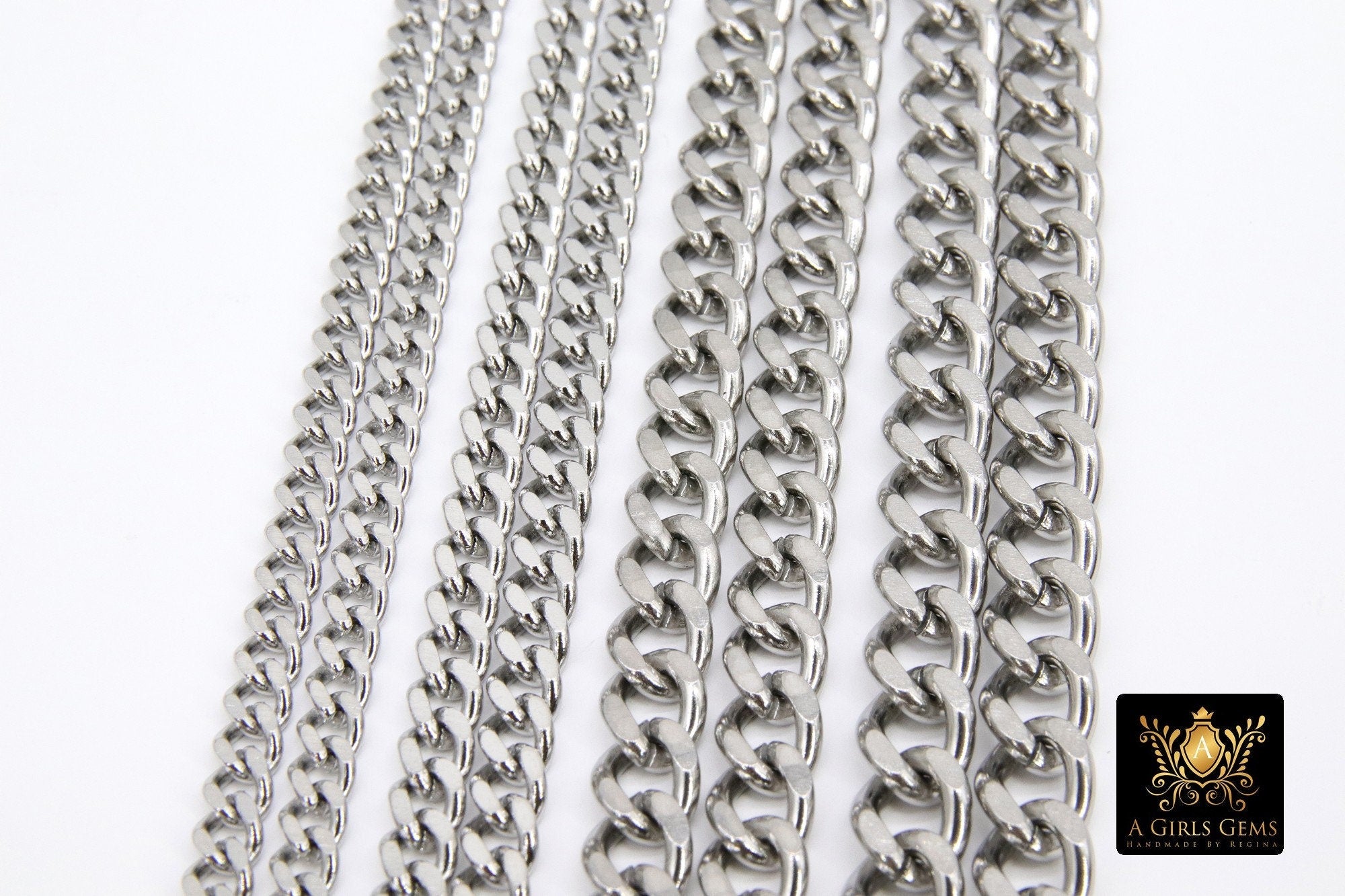 Silver Curb Chain, Plated Stainless Steel Large Cuban Diamond Cut Oval Unfinished Necklace Jewelry Chains