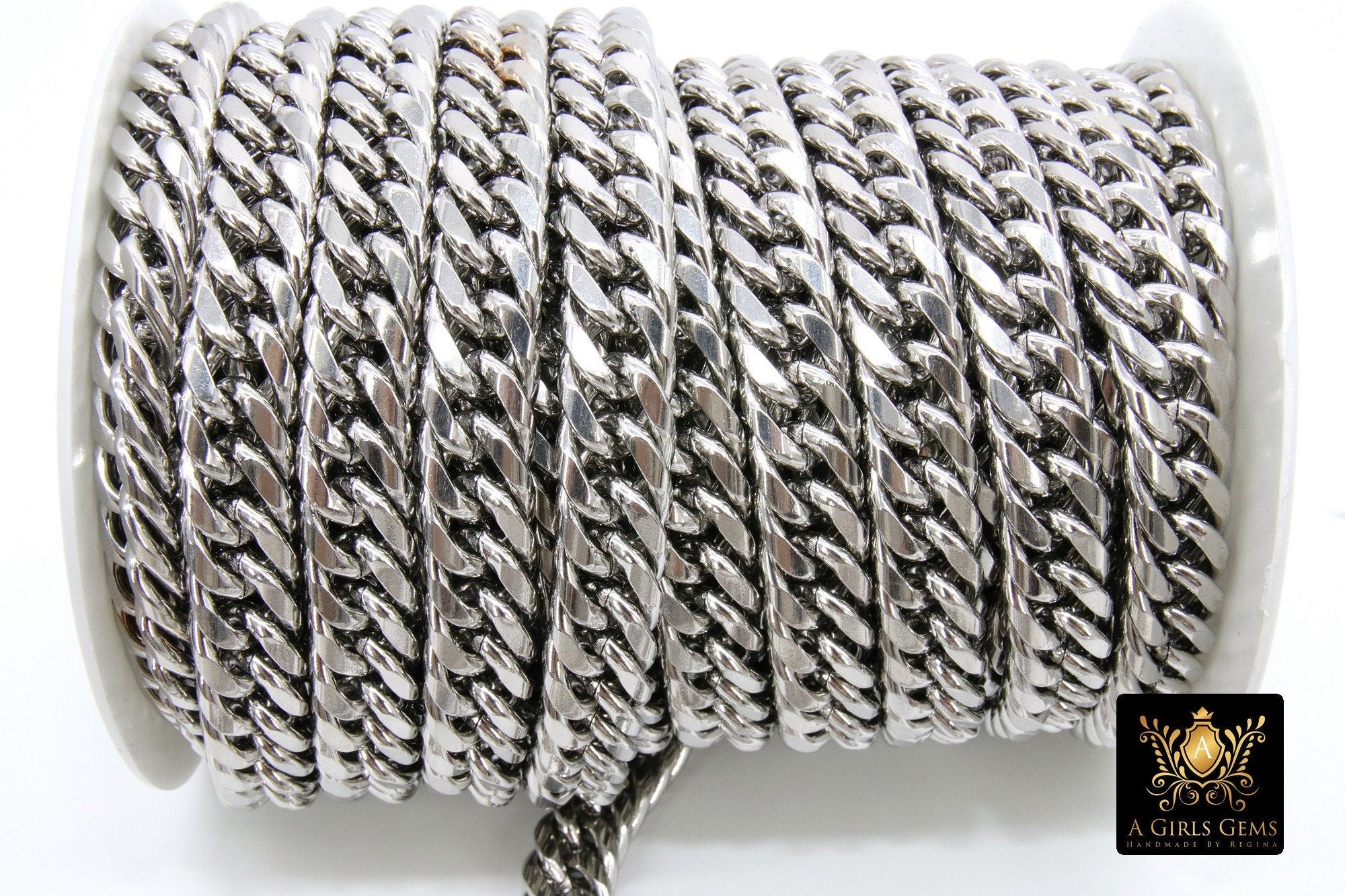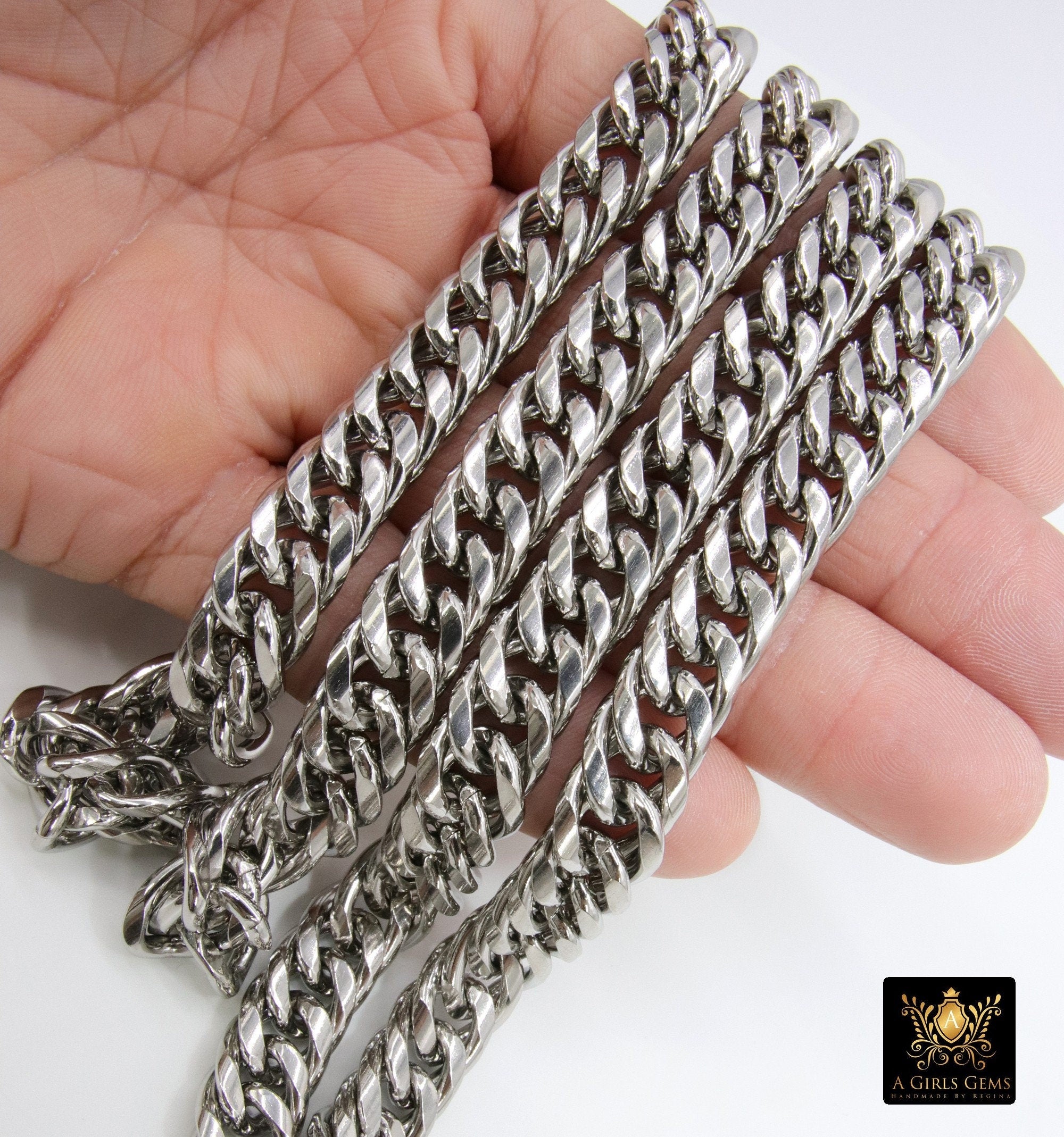 Silver Curb Chain, 304 Stainless Steel Large Heavy Flat 16.5 mm CH #249, Cuban Diamond Cut 11.6 mm Oval Unfinished Chains