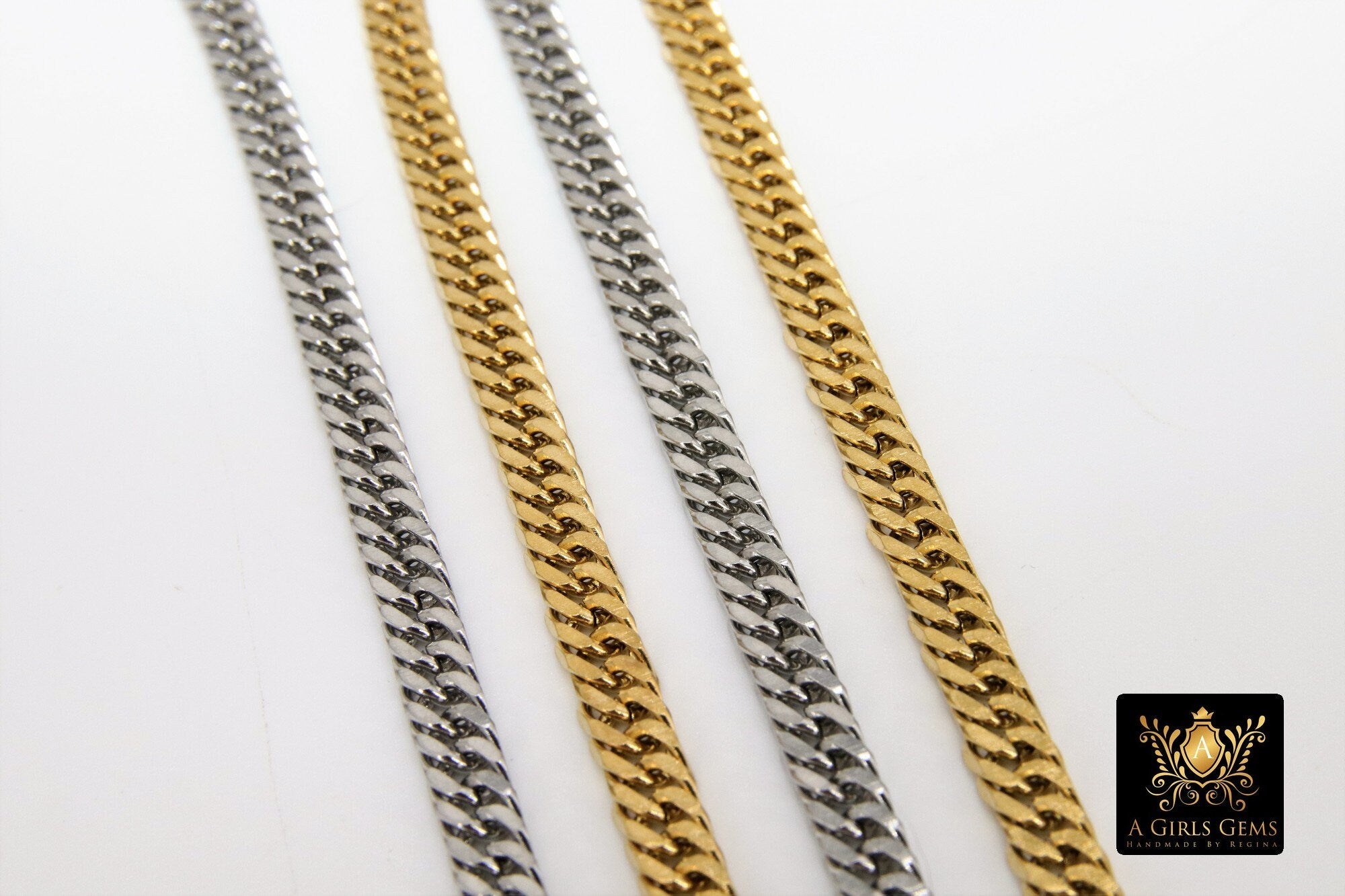 Notes Regarding Chains: All of our chains are cut in a continuous chain unless it is the end of a roll. We do not cut 10 feet in 1 foot sections. Any 925 Sterling Silver or Silver plated chains will tarnish. We suggest keeping your chains in a sealed jewelry bag to help prevent this. I'm sorry but all cut chains are non refundable. We recommend you try a foot sample before large purchases. Stainless steel chains come in gold or silver and are known for their non tarnishing properties. We don't control the colors, where gold may be applied on tight weave or small chains. All of our 14 K Gold Filled chains, charms, or findings are Genuine 14/20 Gold Filled. To be called gold filled by US LAW, the plating needs to be very very thick, at least 5% of weight.