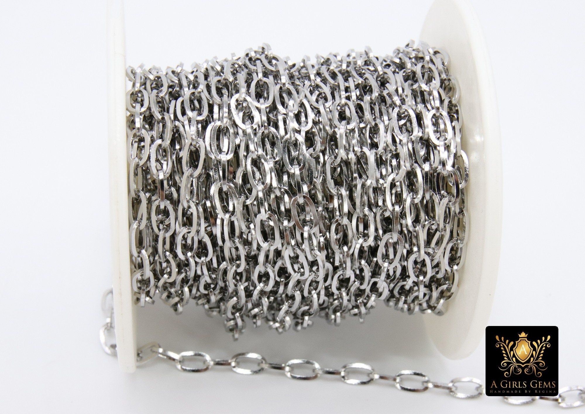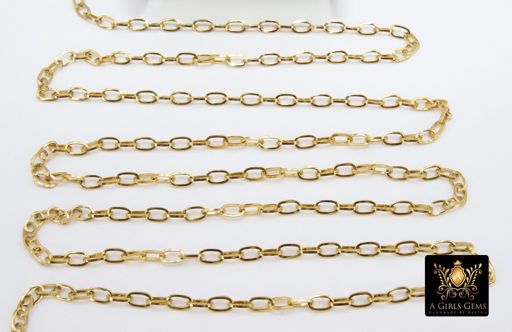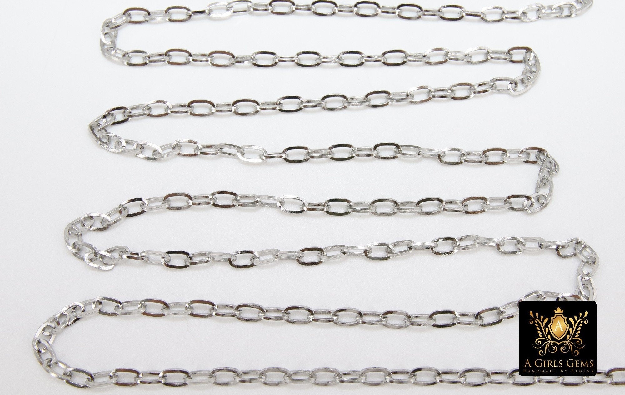 Silver or Gold Stainless Steel Chains are 7.0 x 4 mm.