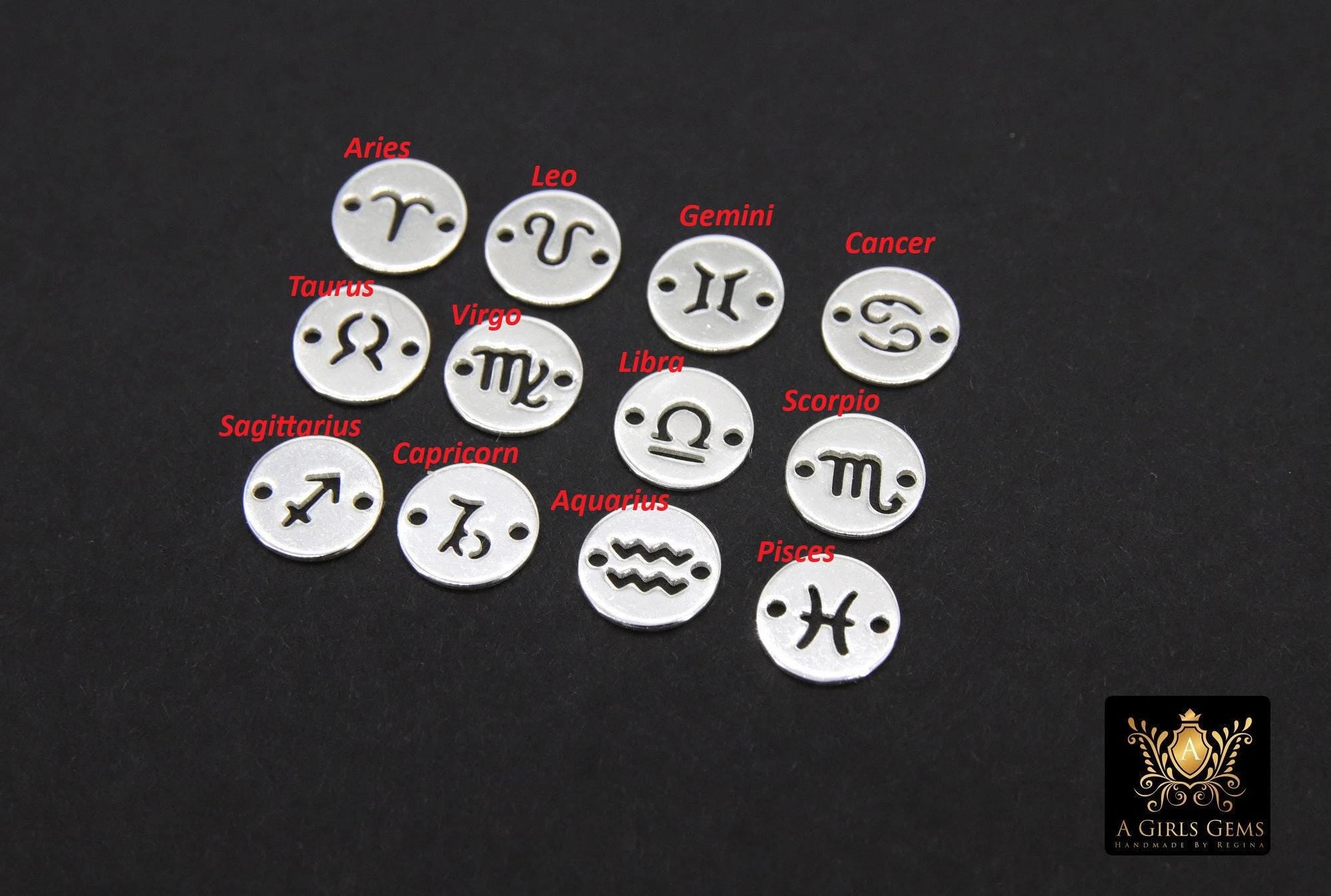 14 K Gold Filled Horoscope Connectors, 6 mm 925 Sterling Silver Zodiac Birthday Sign #3505, Round Astrological Symbol