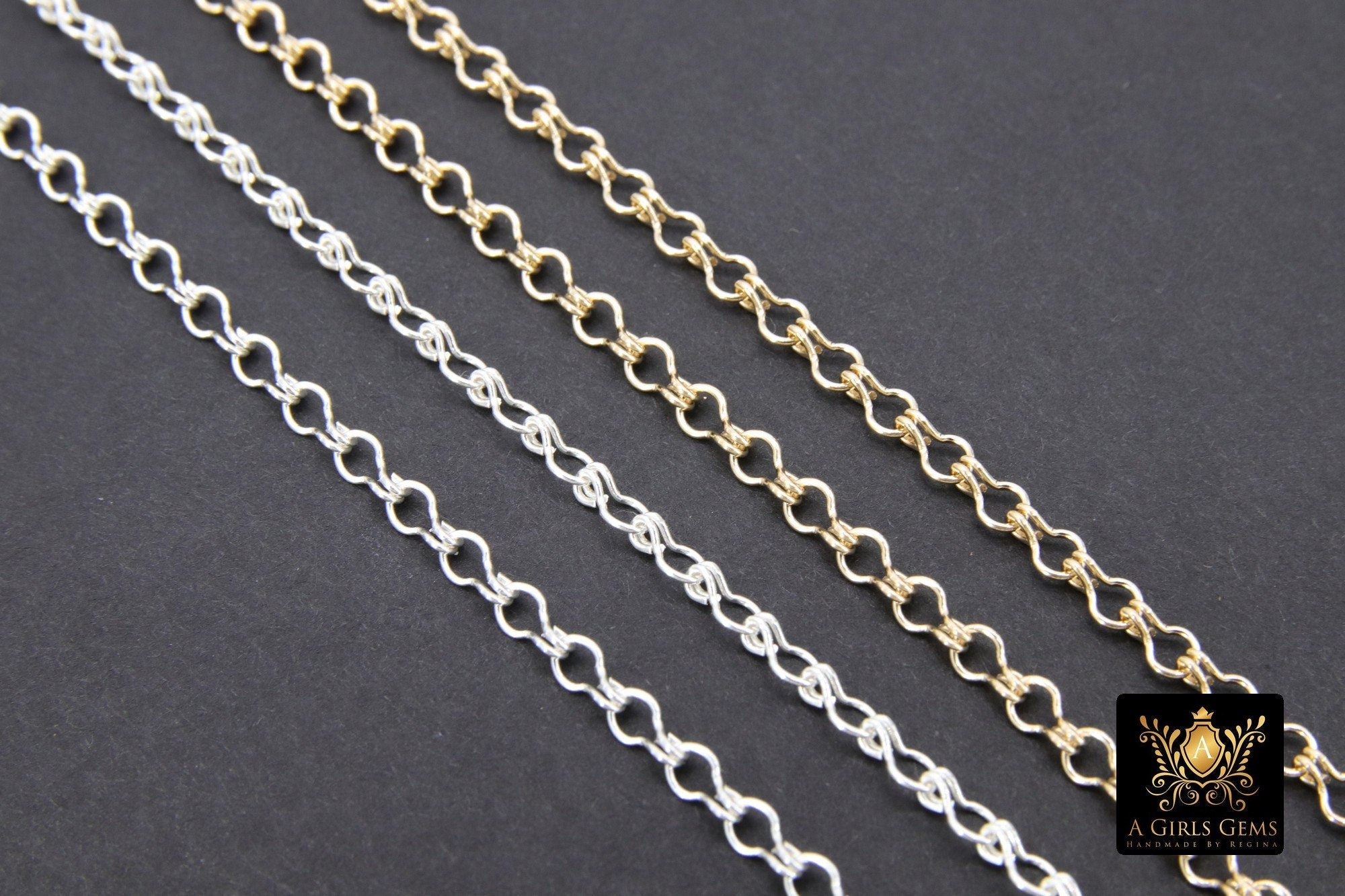 Notes Regarding Chains: All of our chains are cut in a continuous chain unless it is the end of a roll. We do not cut 10 feet in 1 foot sections. Any 925 Sterling Silver or Silver plated chains will tarnish. We suggest keeping your chains in a sealed jewelry bag to help prevent this. I'm sorry but all cut chains are non refundable. We recommend you try a foot sample before large purchases. Stainless steel chains come in gold or silver and are known for their non tarnishing properties. We don't control the colors, where gold may be applied on tight weave or small chains. All of our 14 K Gold Filled chains, charms, or findings are Genuine 14/20 Gold Filled. To be called gold filled by US LAW, the plating needs to be very very thick, at least 5% of weight. We do not replace for slight imperfections, defects, or variations in factory made chains, slight variations from photos, or minor detail damage issues.