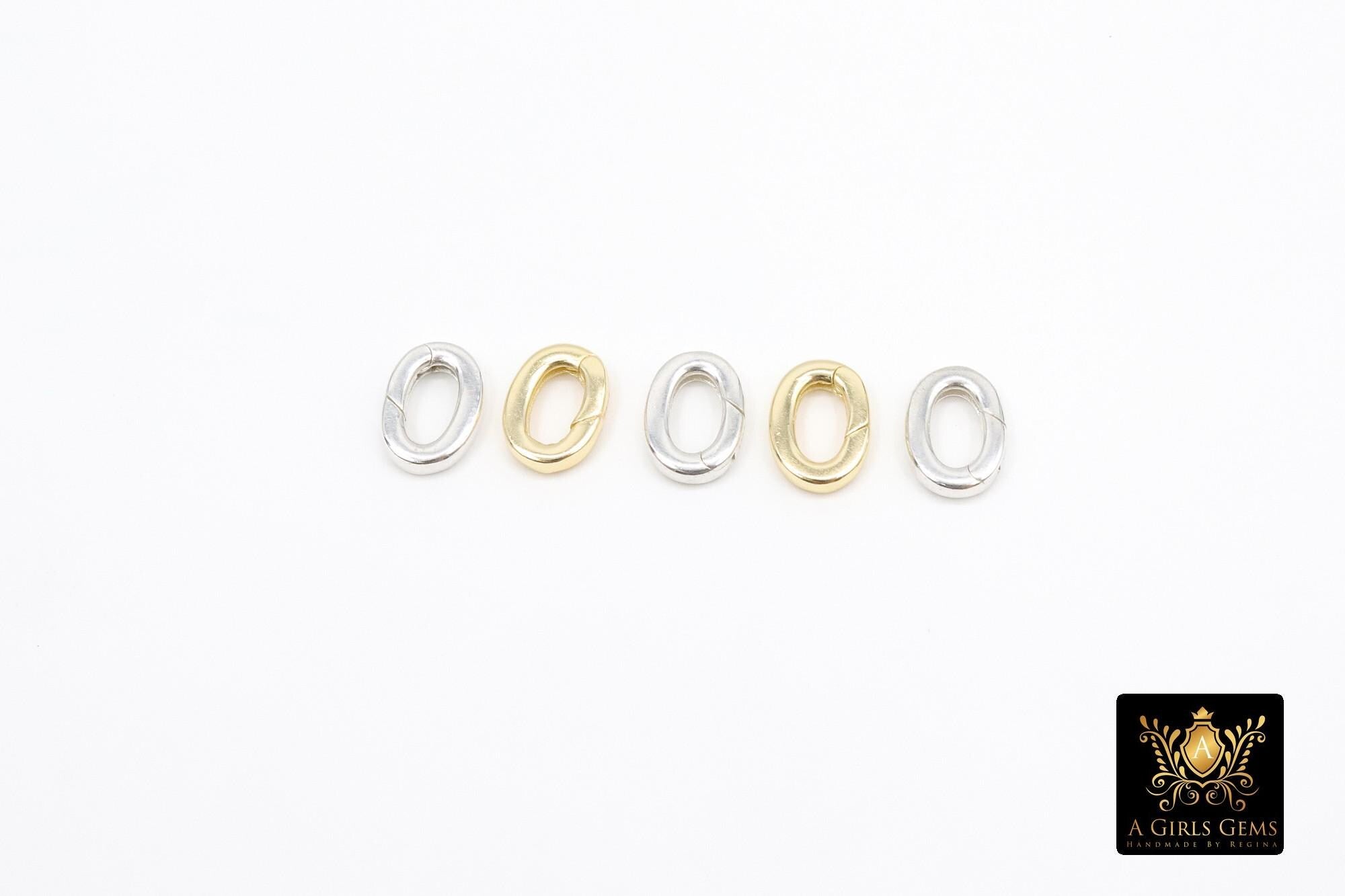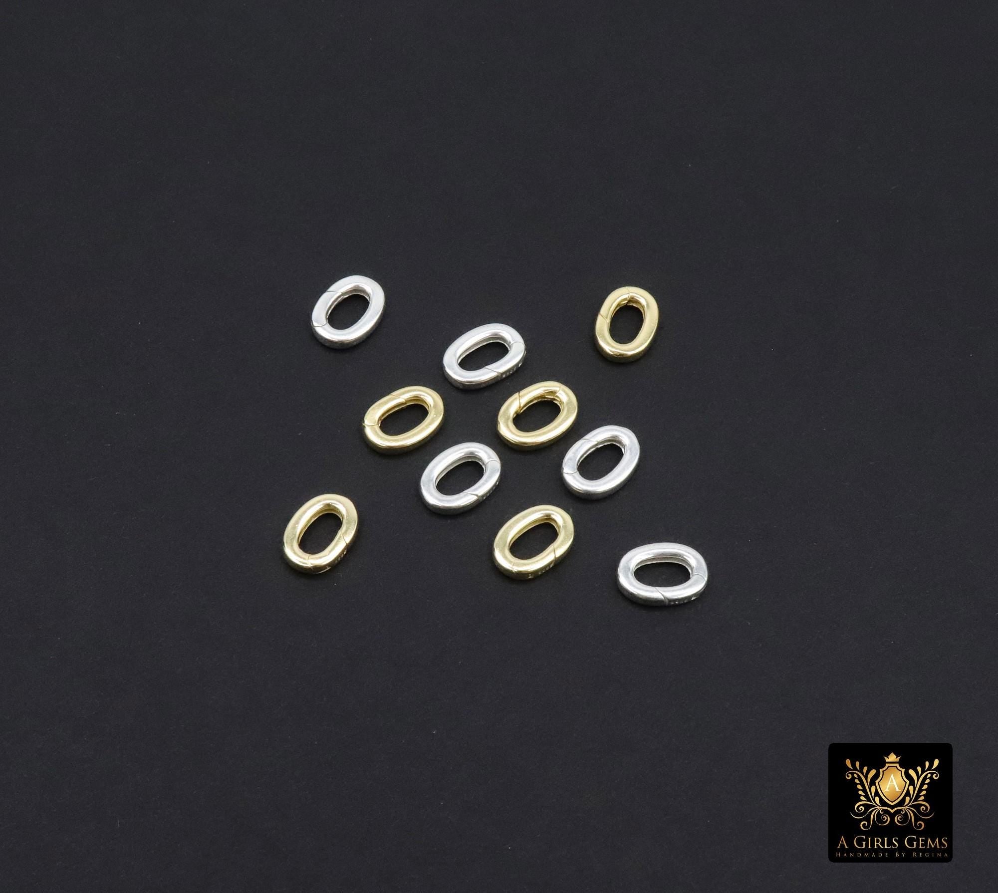 925 Sterling Silver Oval Spring Clasp, Oval Shape Jewelry Push Clasps with loop or without