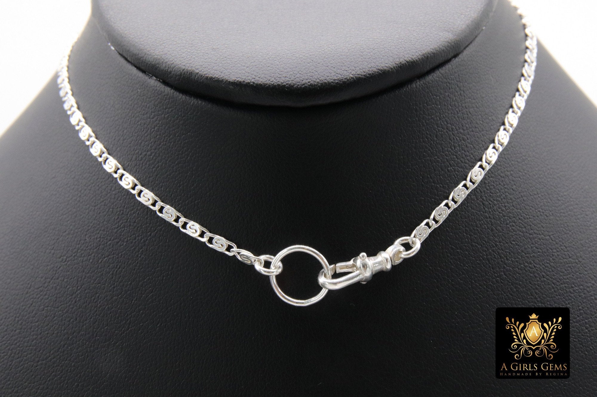 925 Sterling Silver Swivel Fob Chain Bar Link Necklace