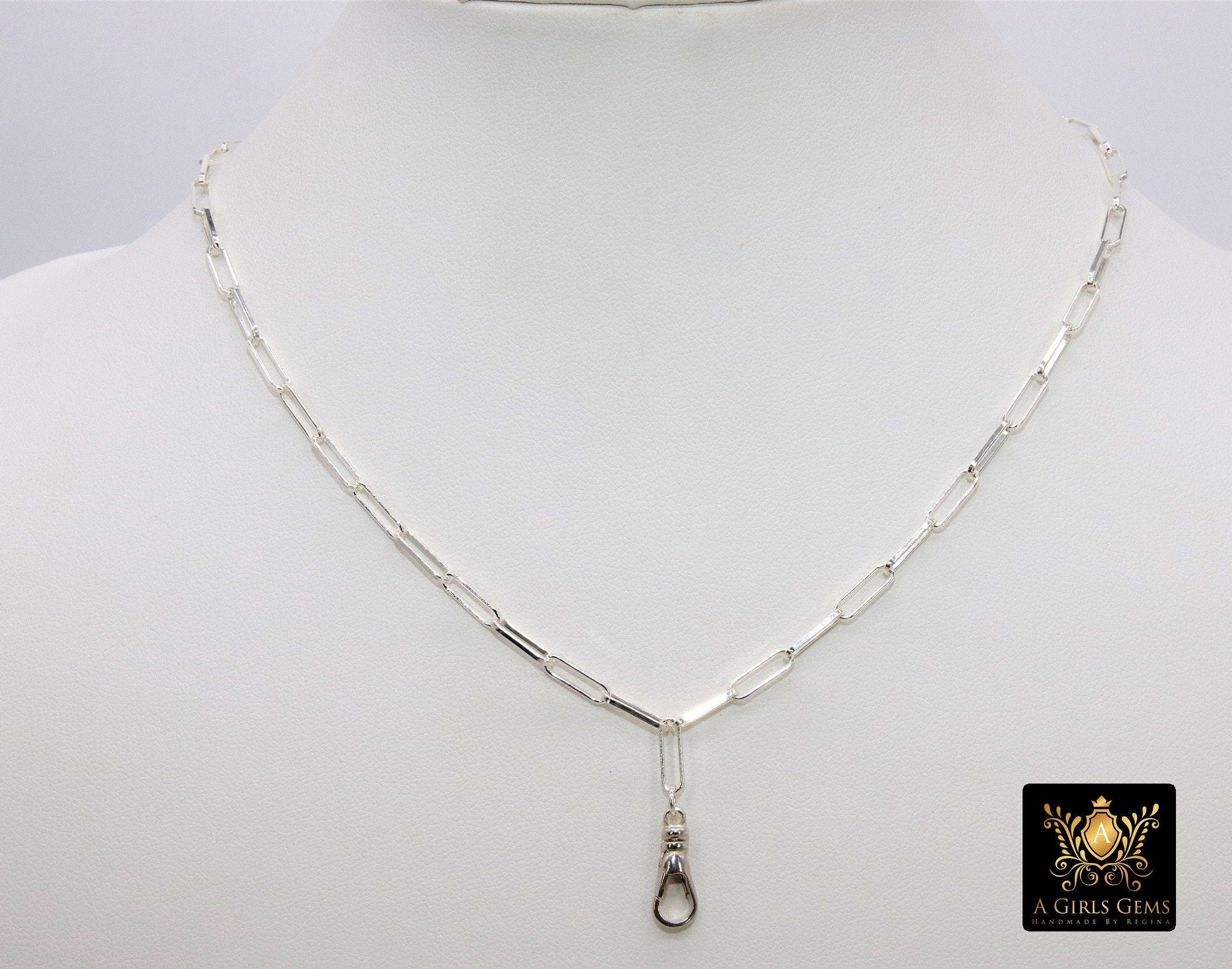 925 Sterling Silver Swivel Fob Wrap Necklace, Silver Drawn Rectangle Chain, Front Clasp Choker