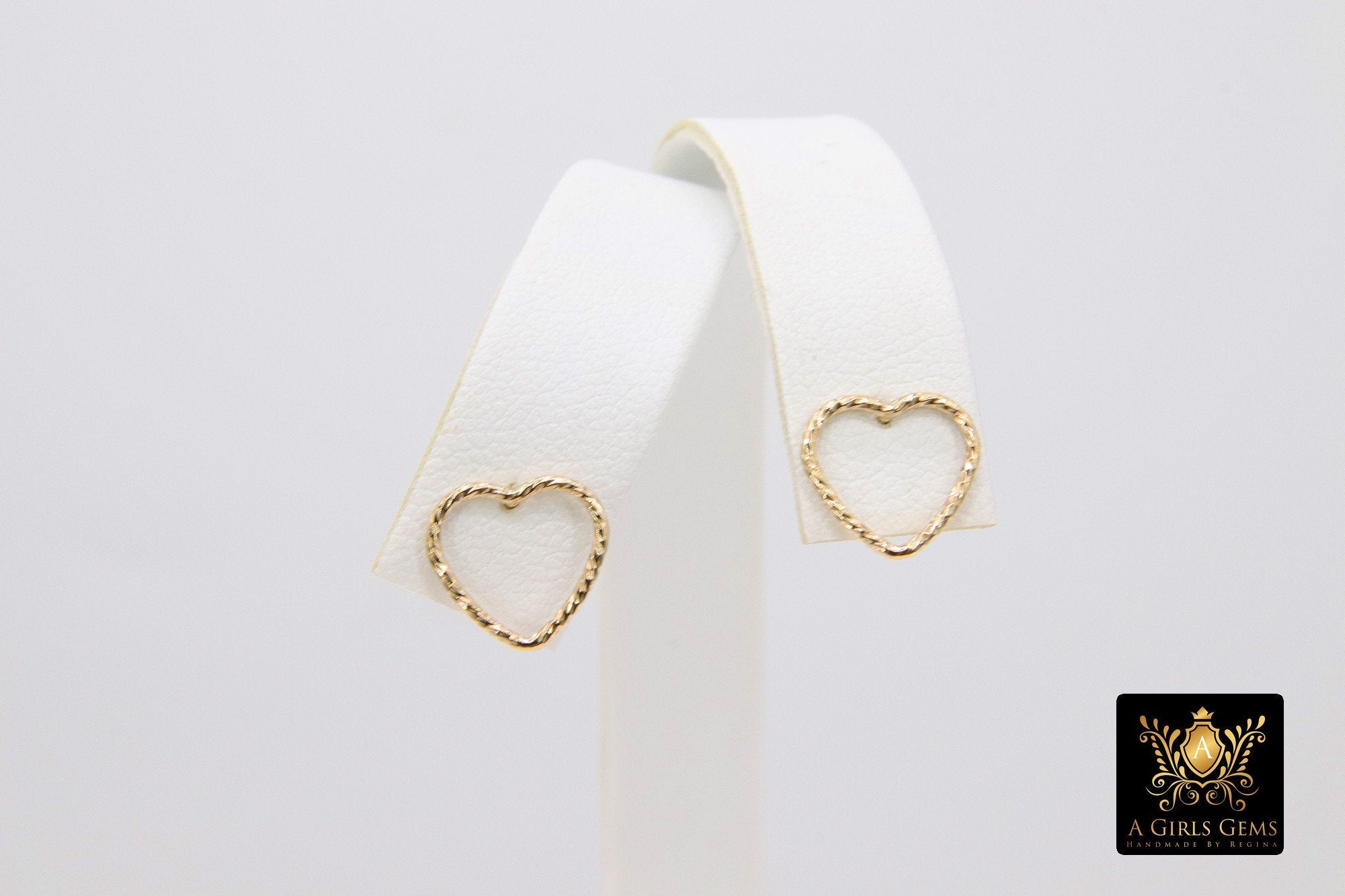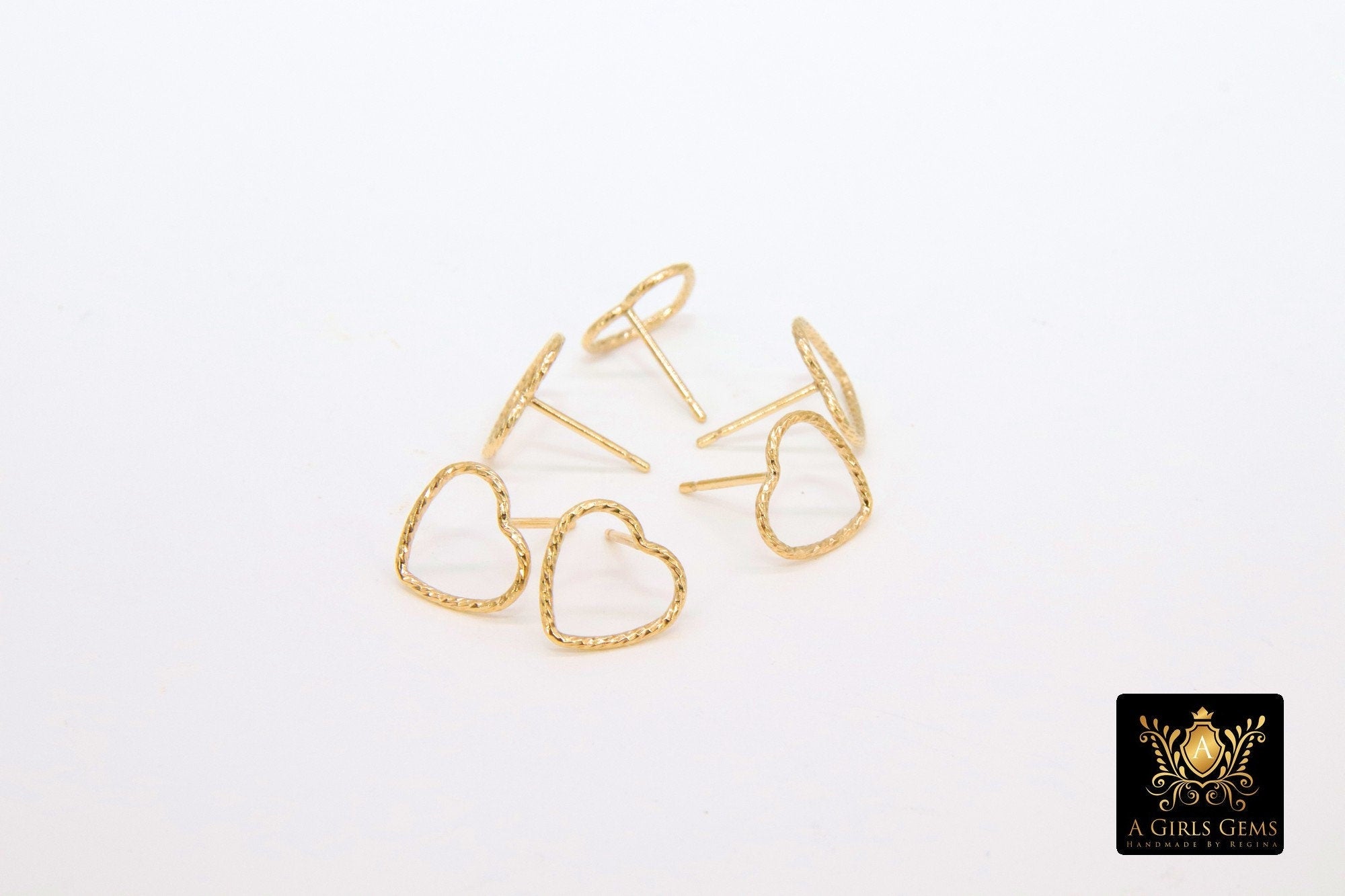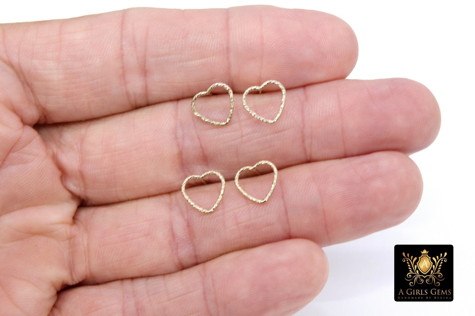 14 K Gold Hoop Stud Earrings, High Quality Gold Filled Heart Stud Post Findings #2801, 10 mm Minimalist Stud Findings