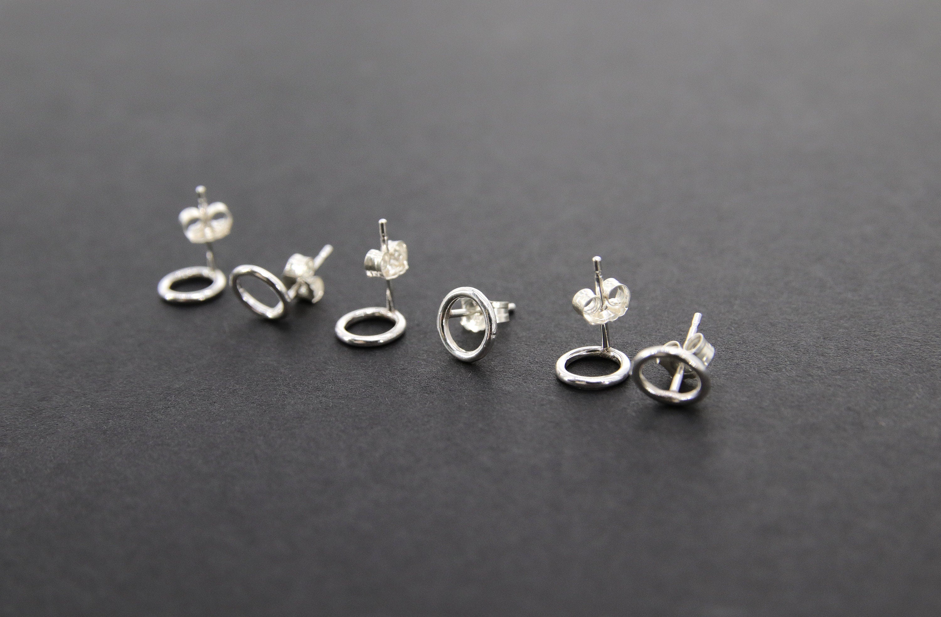 925 Sterling Silver Open Circle Stud Earrings, AG #853, 7mm Ear Posts With Backs