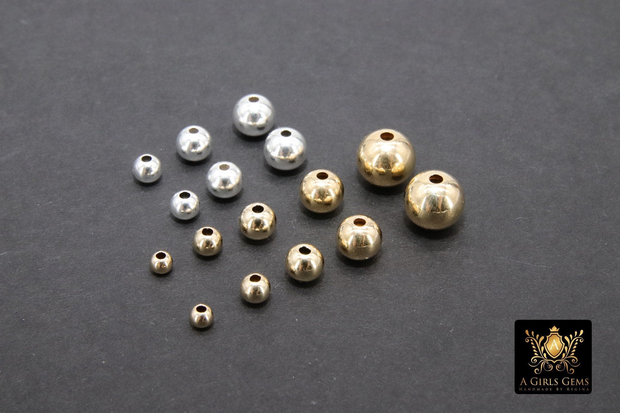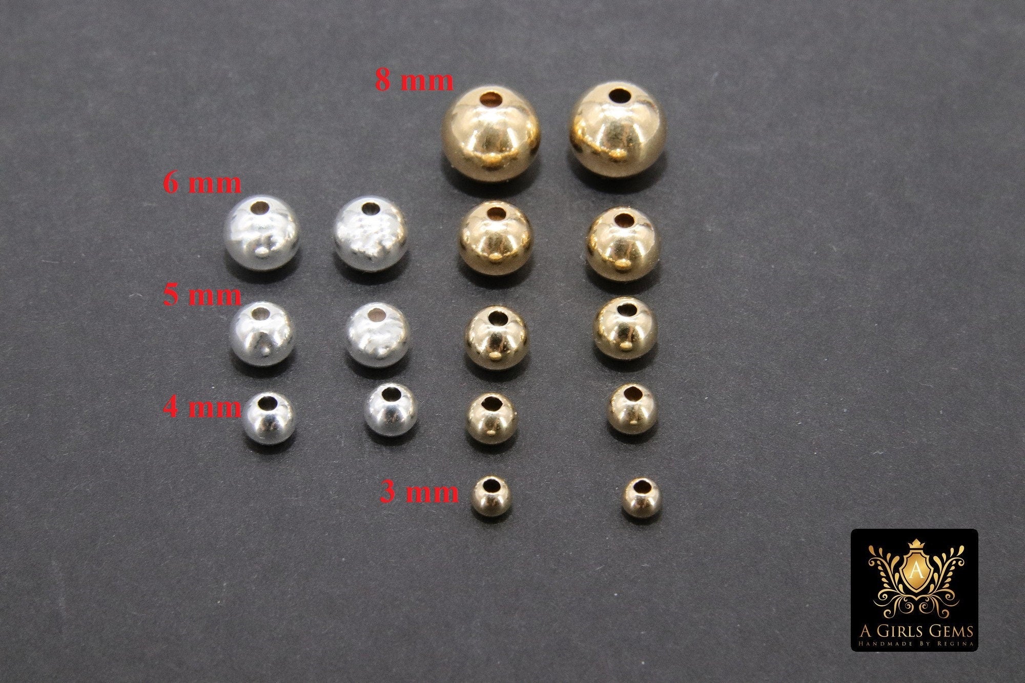 925 Sterling Silver Beads, Smooth Seamless Gold Round Beads, High Quality 3, 4, 5, 6, 8 mm, Bracelet Jewelry Findings