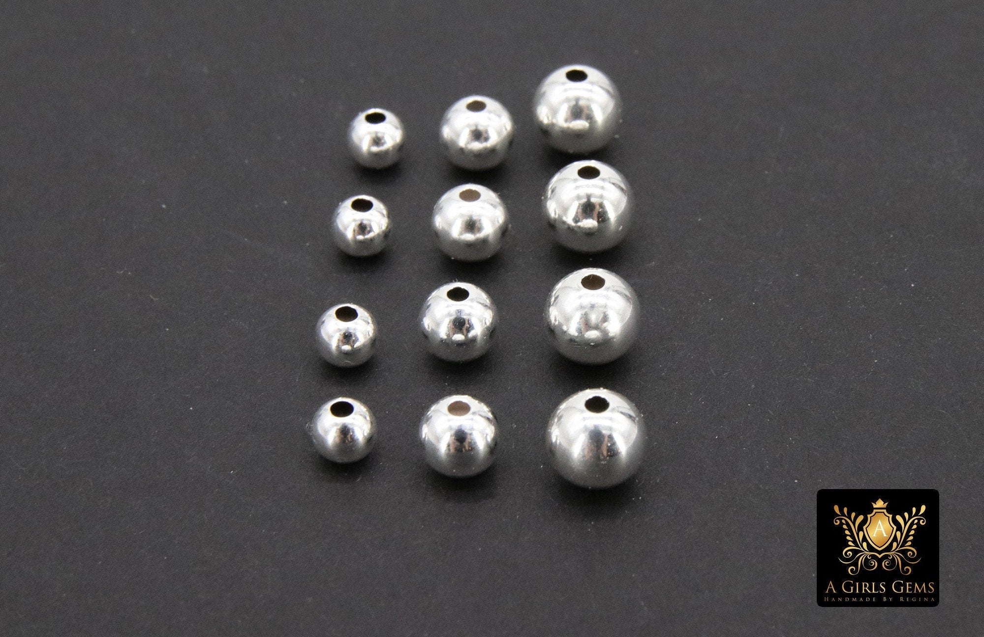 925 Sterling Silver Beads, Smooth Seamless Silver Round Beads # 769, High Quality 2