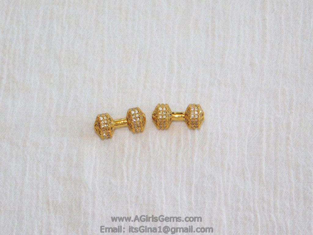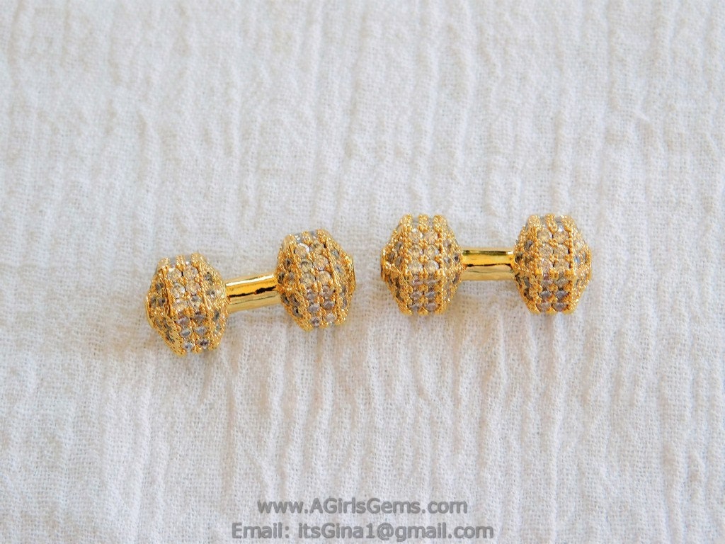 CZ Micro Pave Tube Bead, Charm Holder Bead Connector, Gold Plated Dumb Bell 7 mm x 16 mm Bead Gold Plated AGGSM224