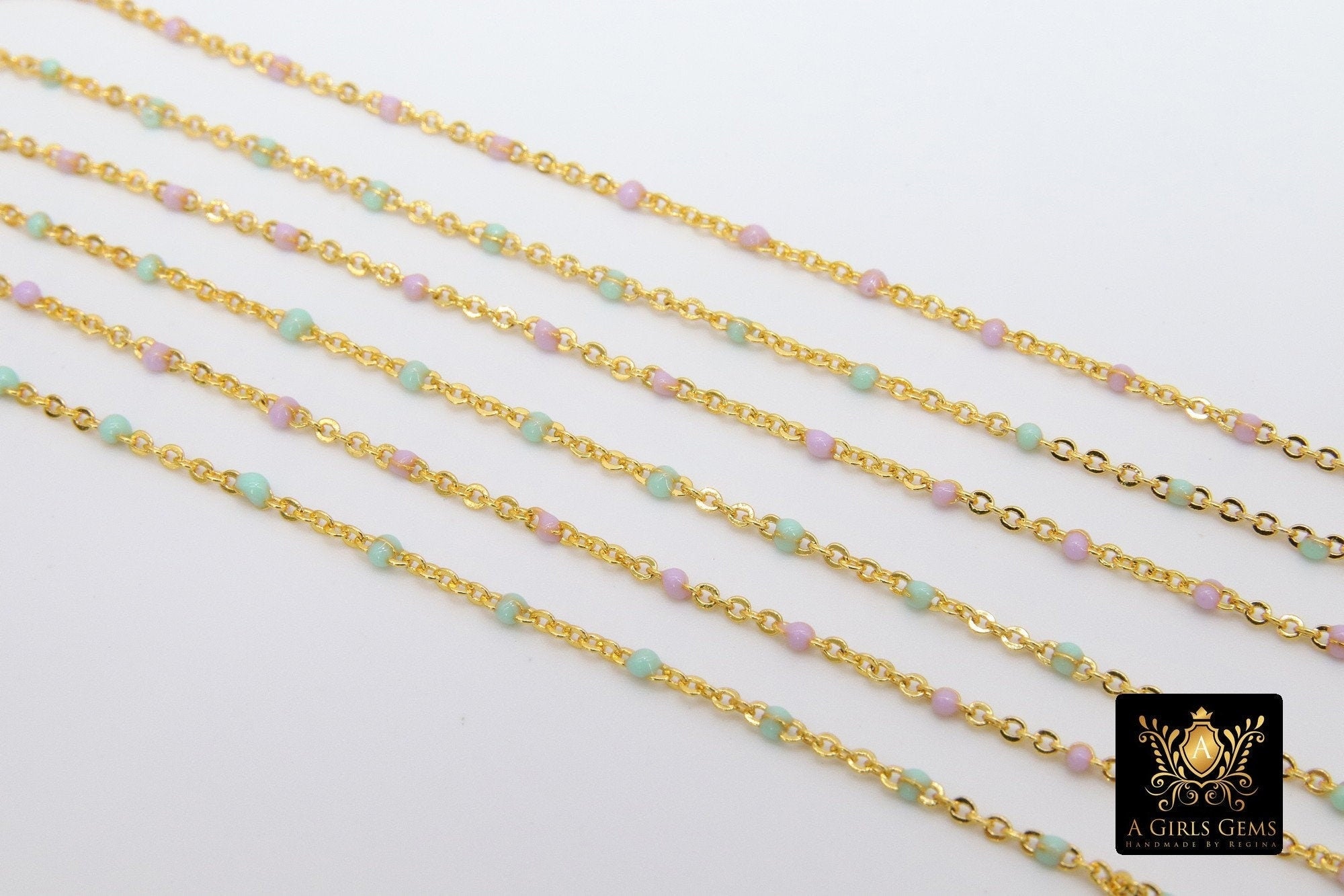 Dainty Gold Beaded Satellite Enamel Chain, Soft Pink Jewelry Chain CH #619, Soft Mint Green Beaded Chain