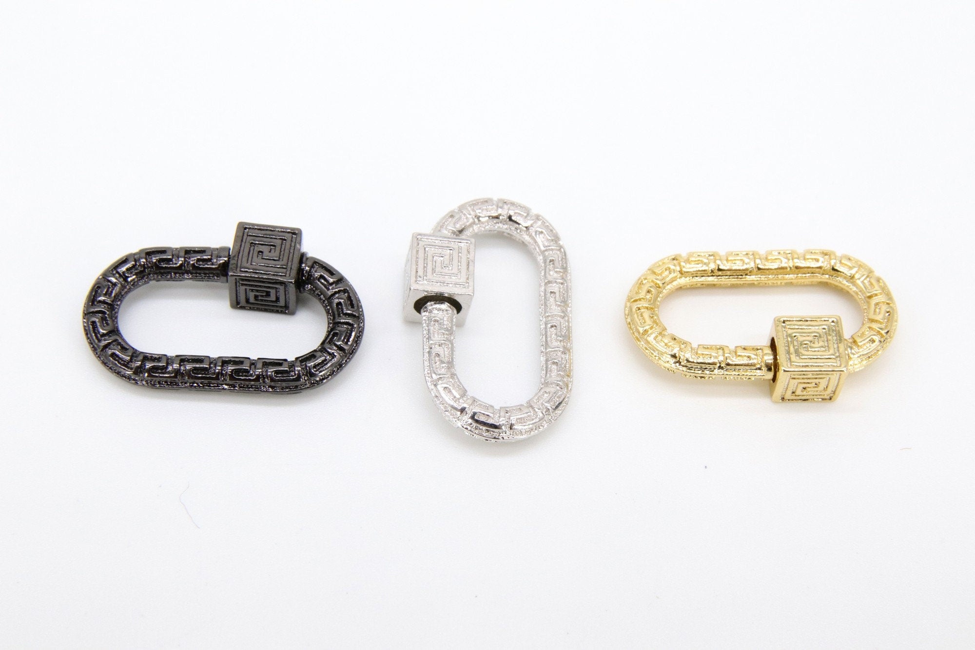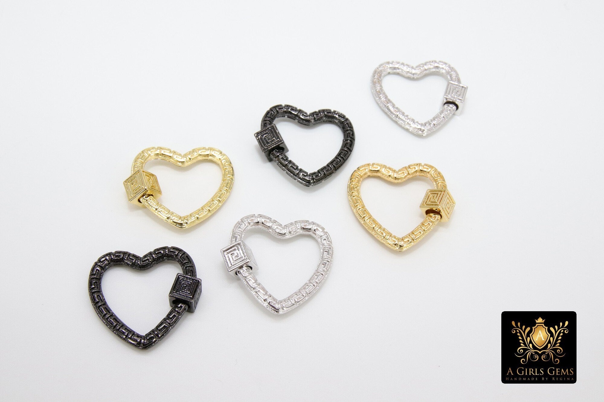 Heart Screw Clasps, Gold Filigree Engraved Interlocking Connector #2635, Silver Black Carabiner