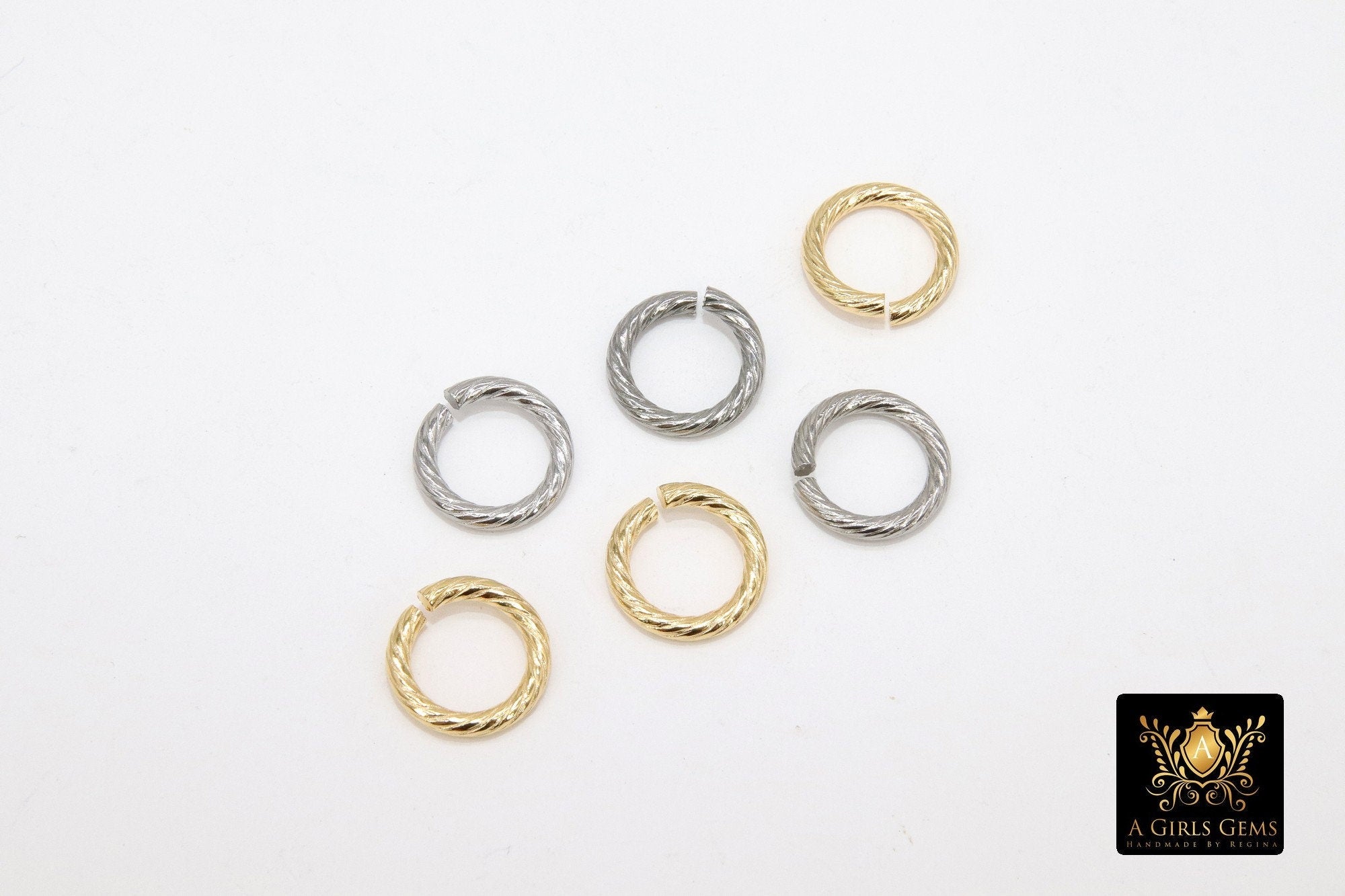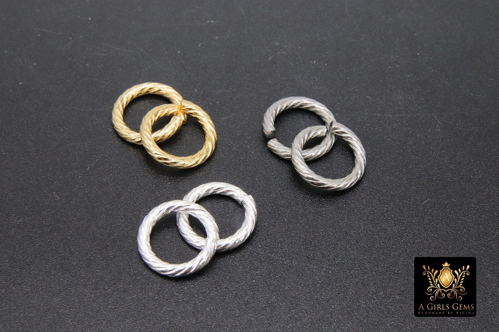 Stainless Steel Gold Jump Rings, 13 mm Open Twisted Silver Rings #384, Large Textured 12 Gauge