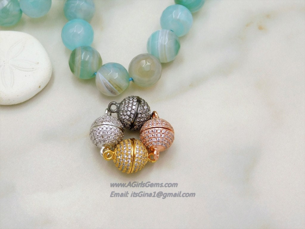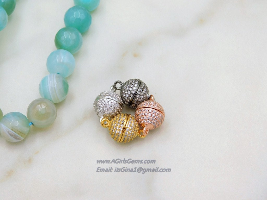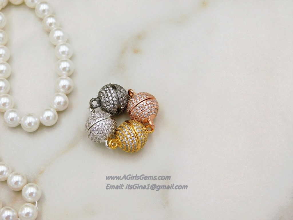 10 mm CZ Round Magnetic Clasp, 6 mm Super Strong Micro Pave Clear Cubic Zirconia Clasp, 8 mm Bail Clasp