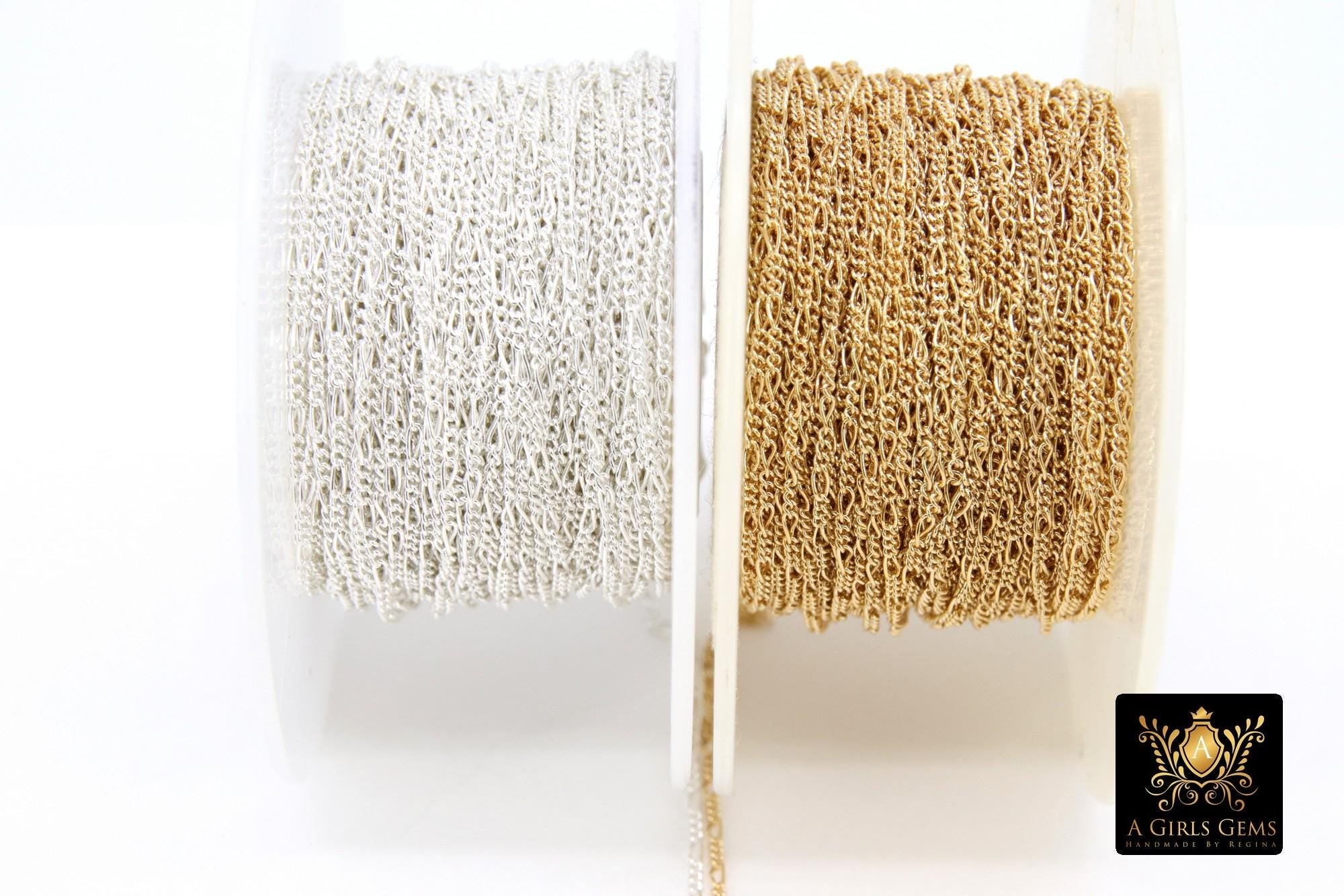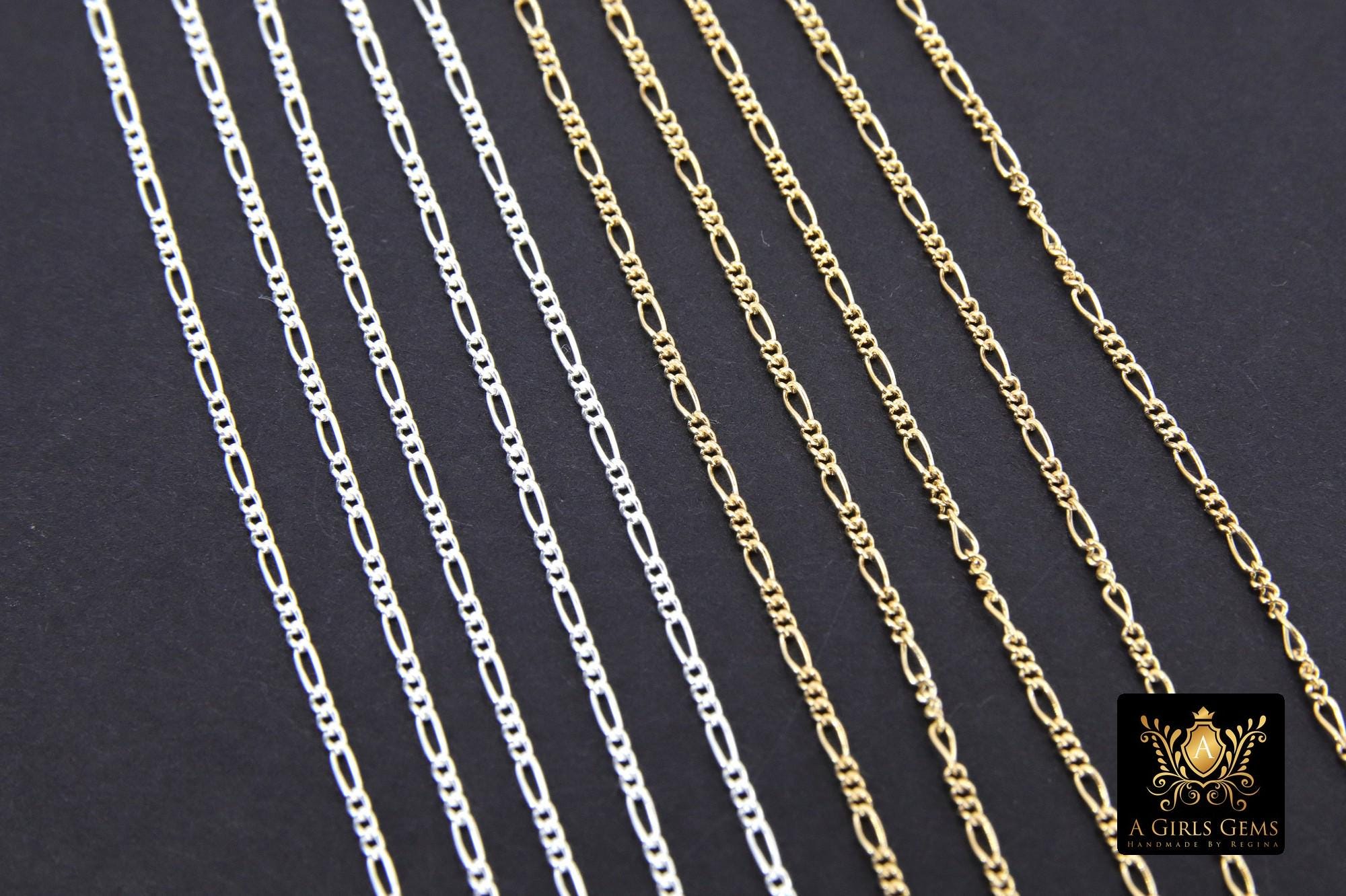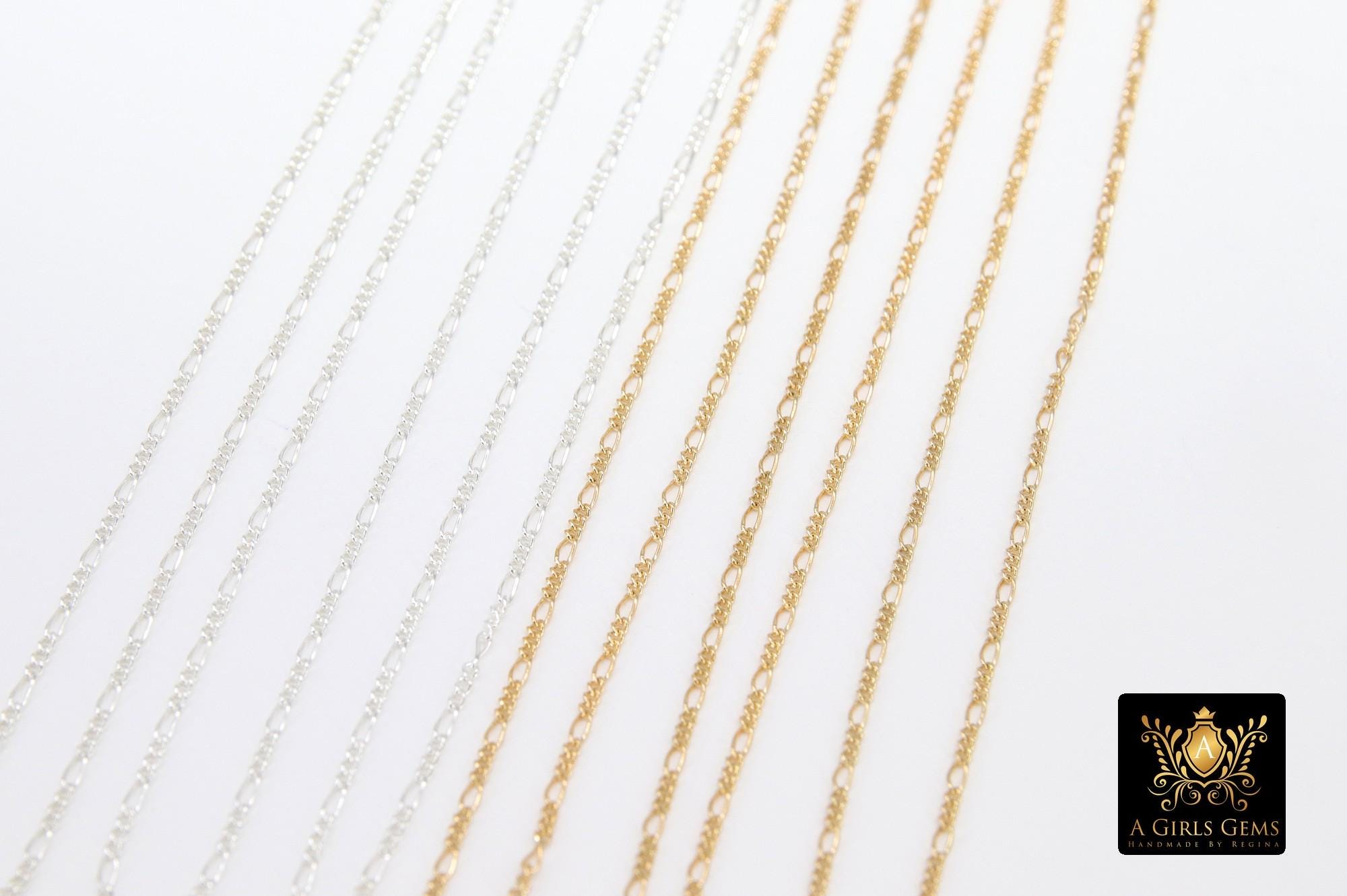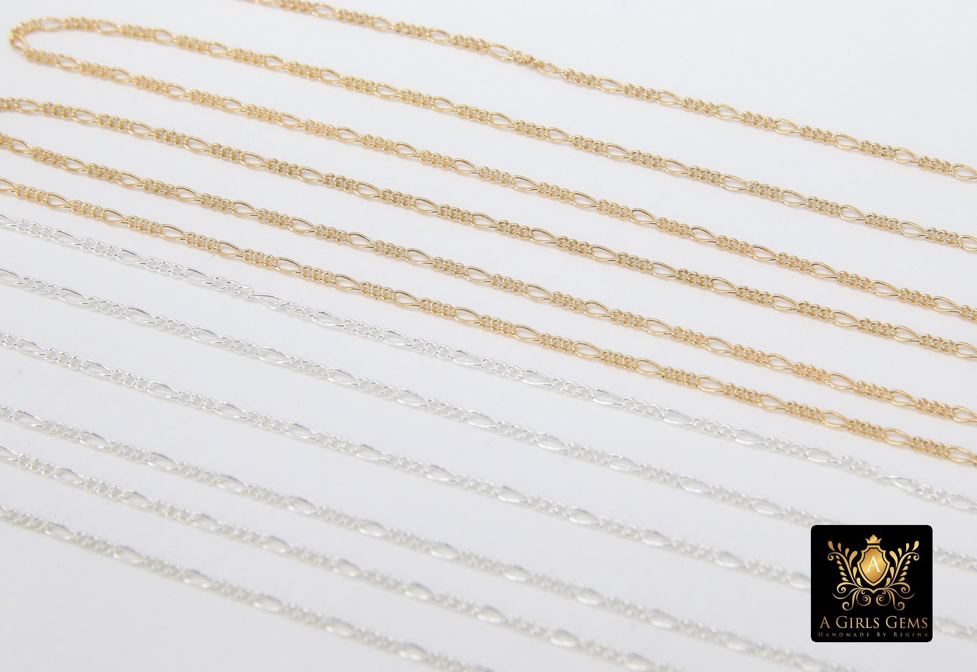 14 K Gold Filled Figaro Chains, 925 Sterling Silver Unfinished By The Foot CH# 913 , 1.3 mm Dainty Long and Short # 885