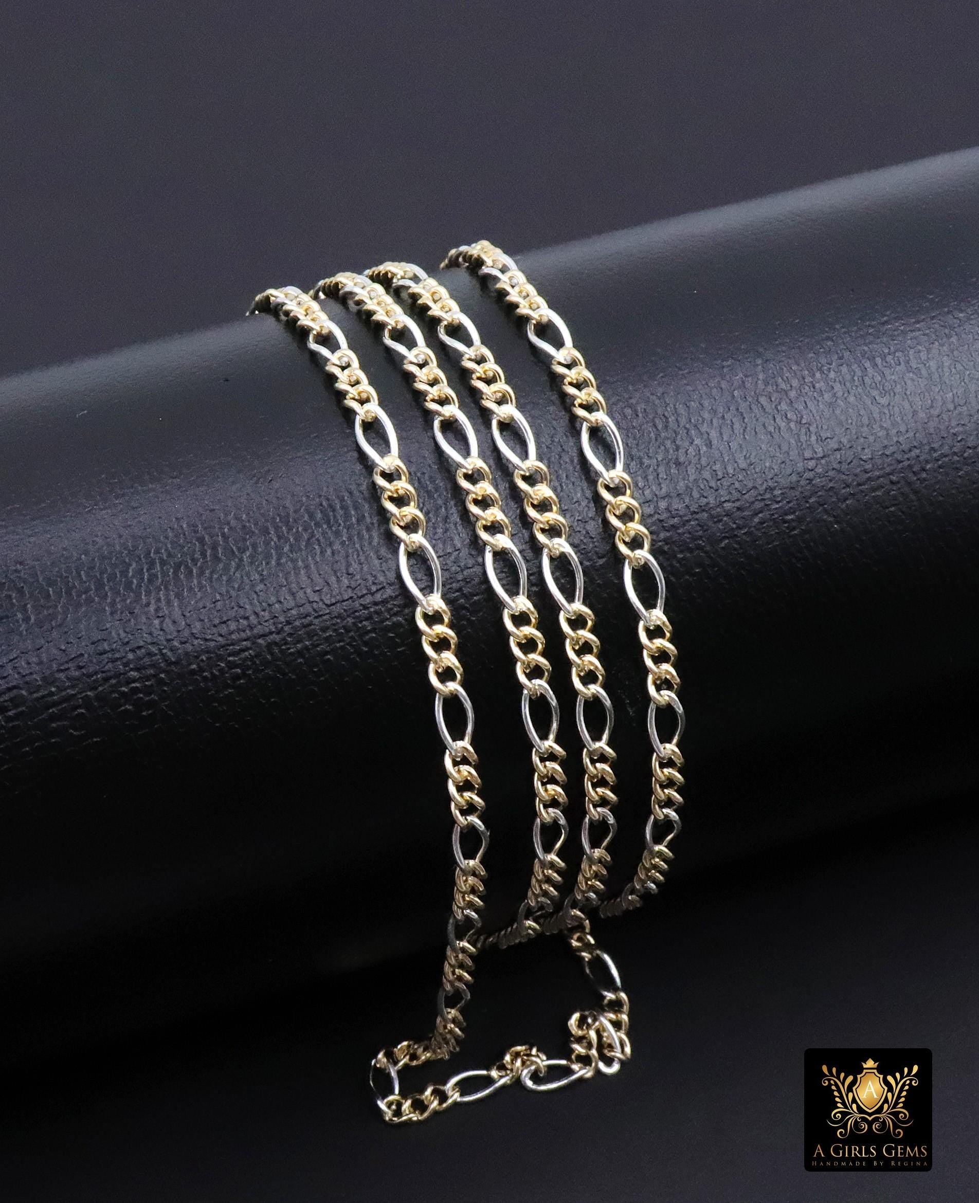 Large 925 Sterling Silver or 14 K Gold Filled 6 mm Figaro Chains; 3 Gold Filled Links with One Silver Link