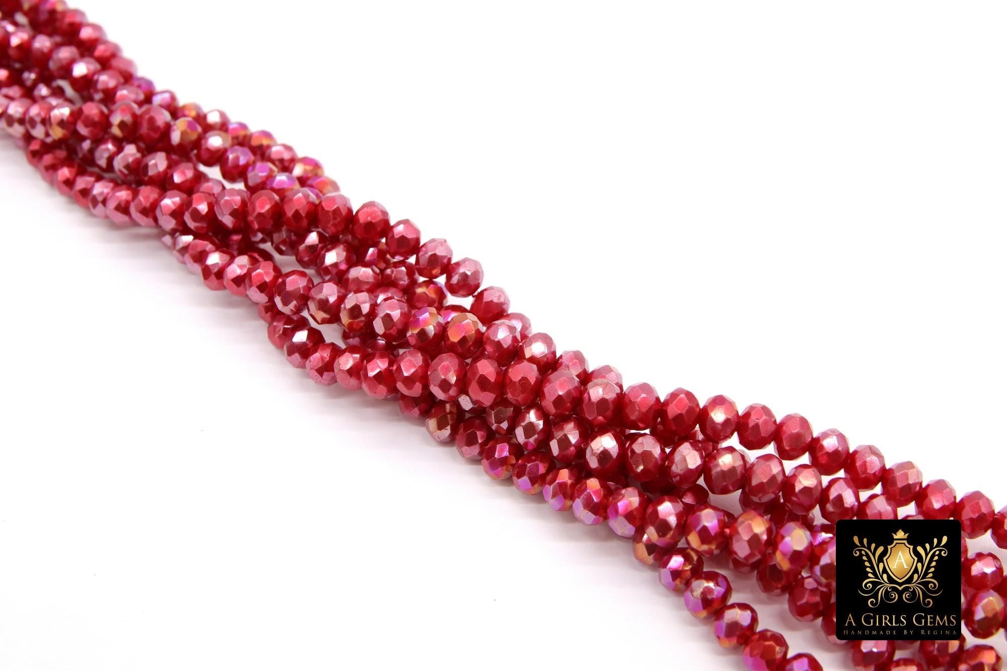 Christmas Red Crystal Beads, 6 mm Ruby Red Faceted Beads BS #328, Bright Red Rondelle