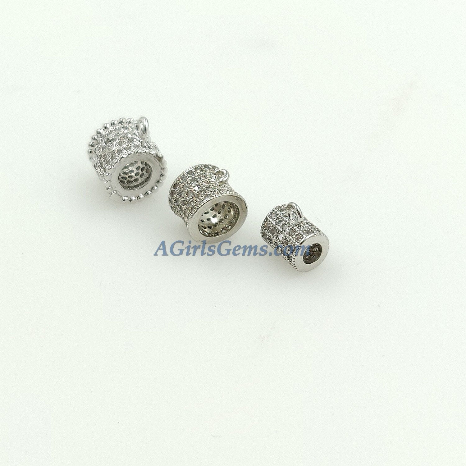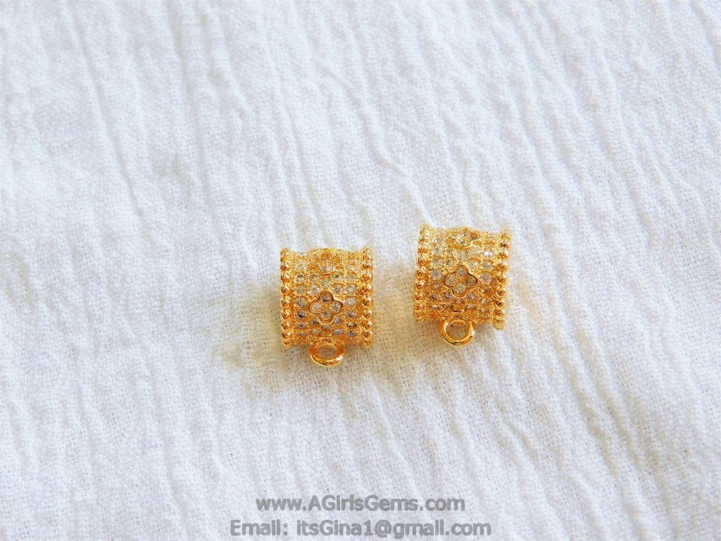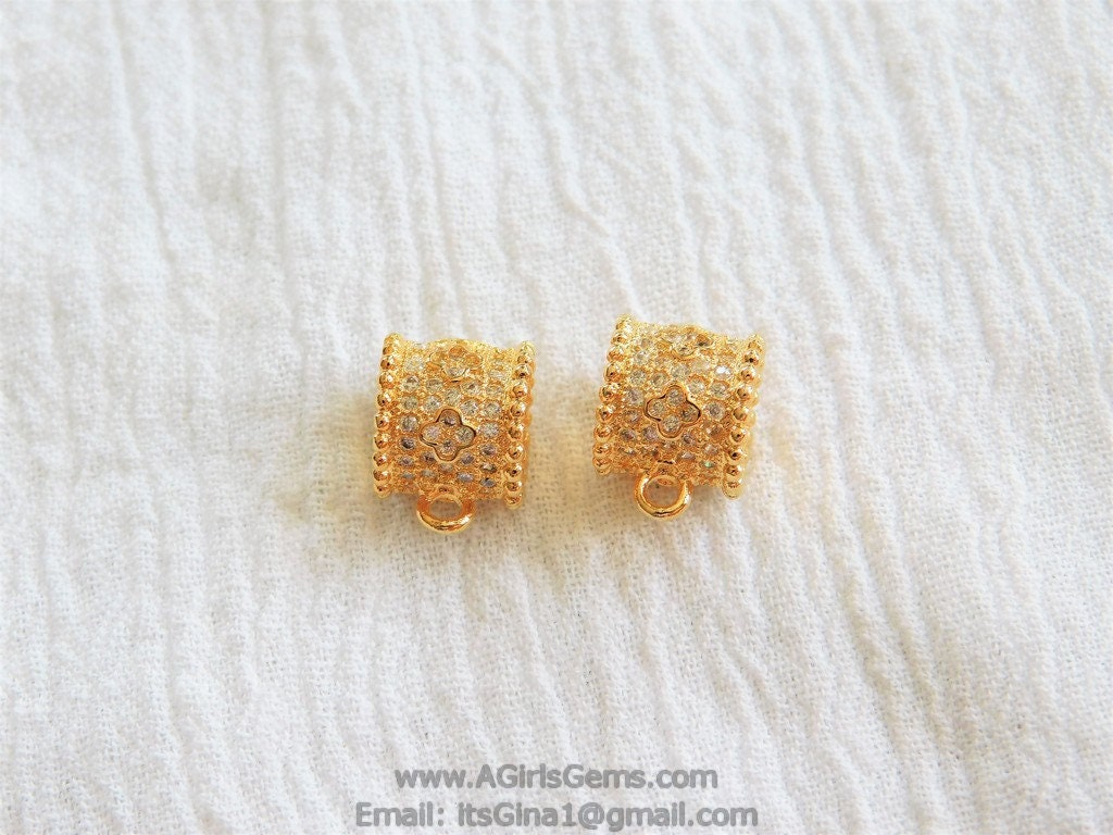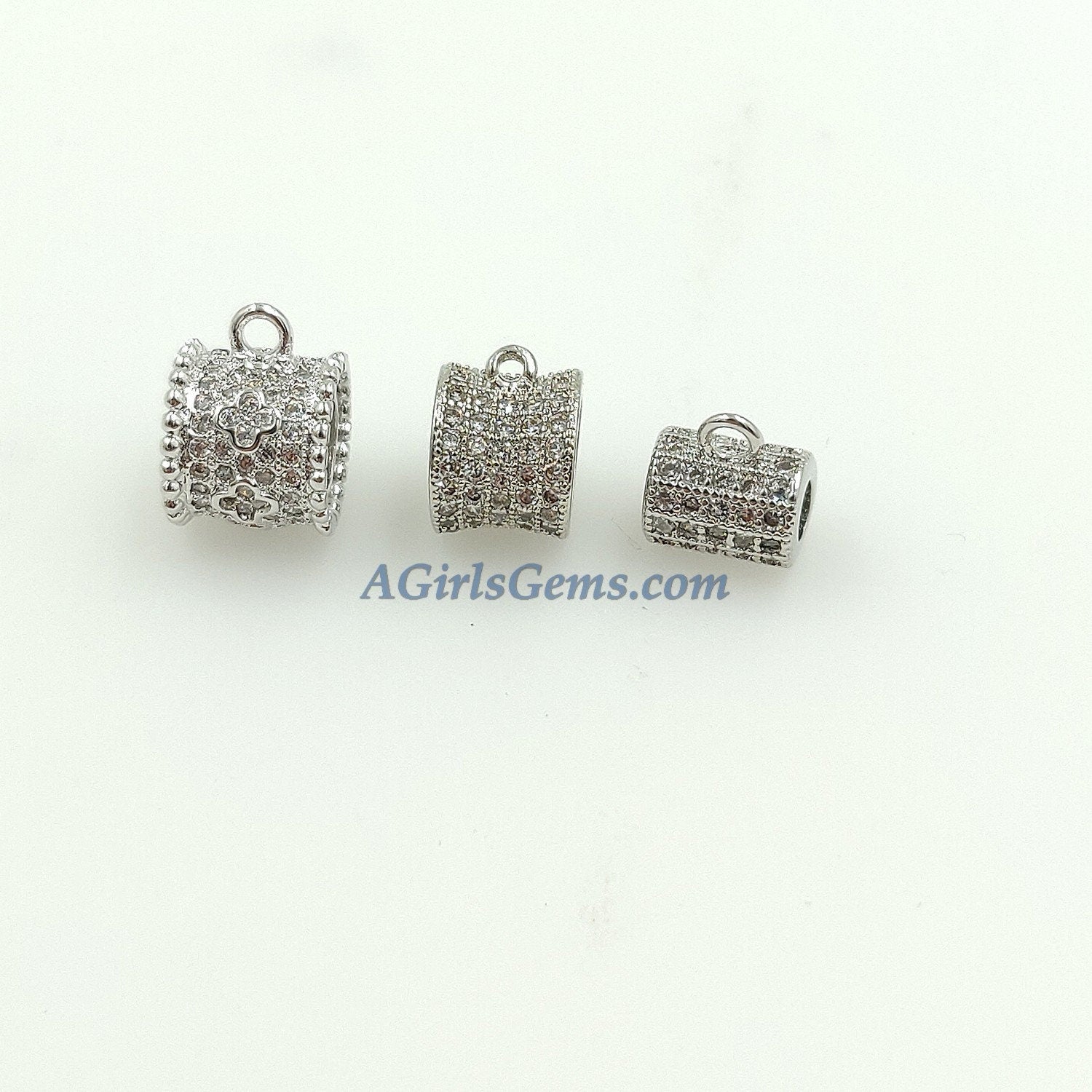 CZ Micro Pave Bail Bead, Gold or Silver Round Connector Tube Charm Pendant Holders #133, Clover Big Large Hole with Loop